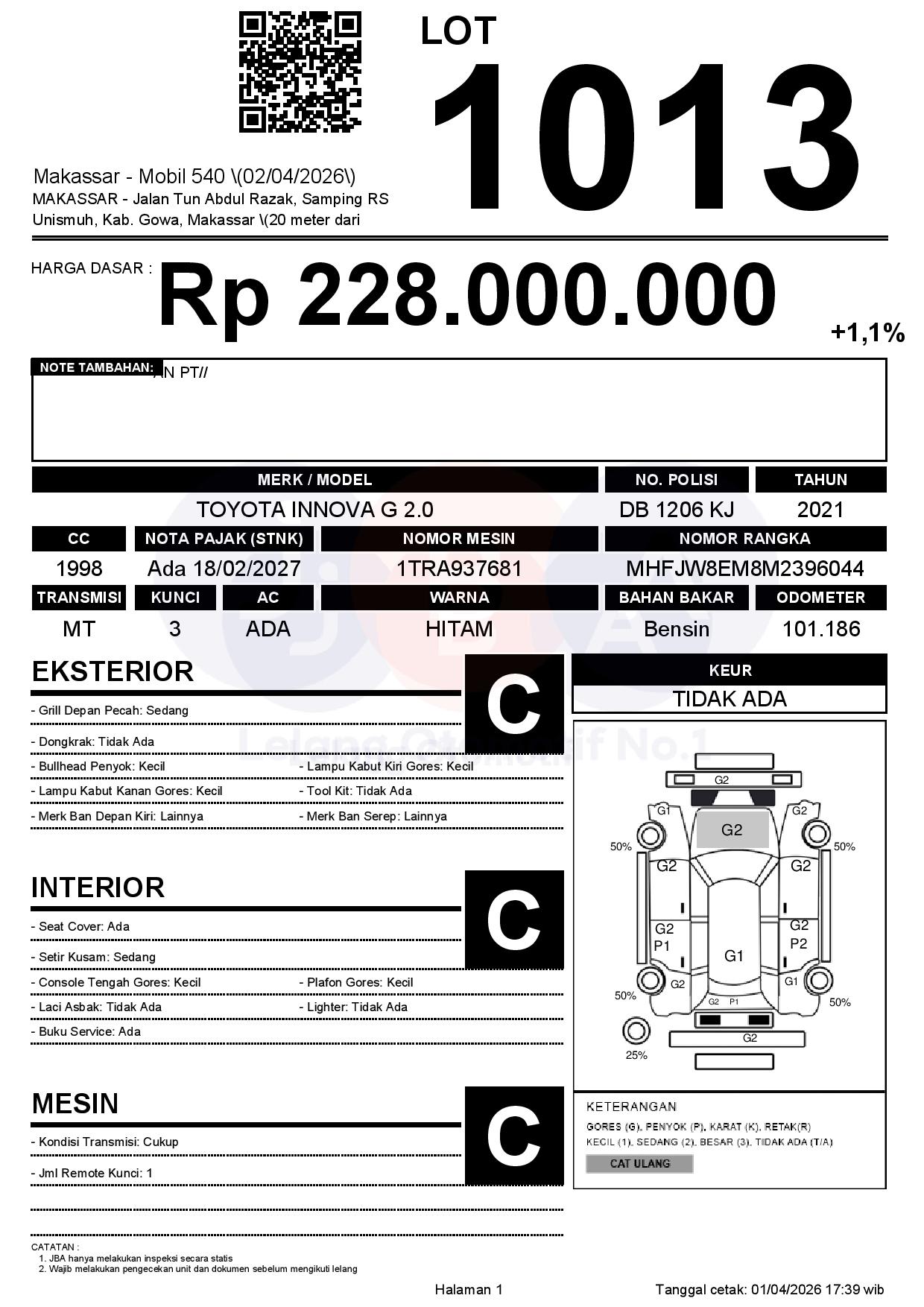 Tanggal Lelang: 02/04/2026 | 13:00 WITA