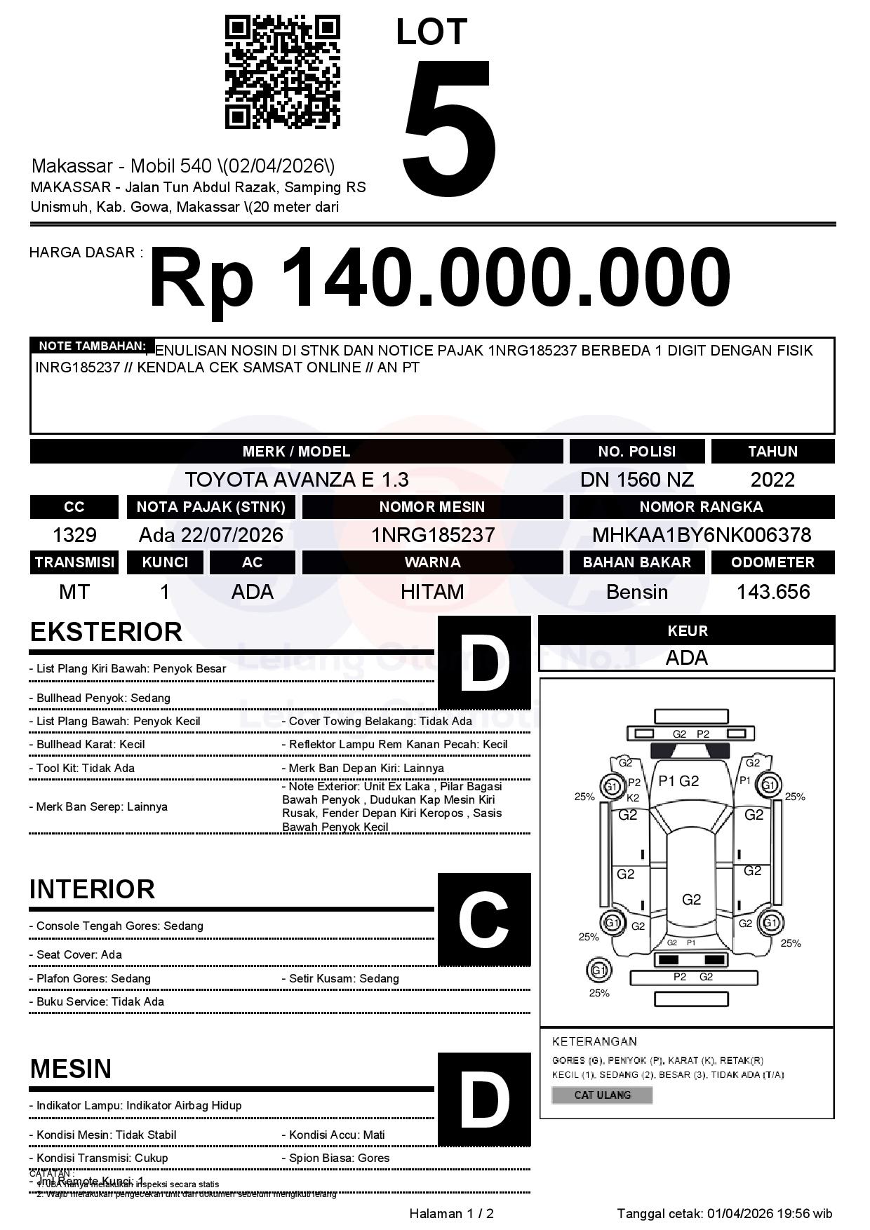 Tanggal Lelang: 02/04/2026 | 13:00 WITA