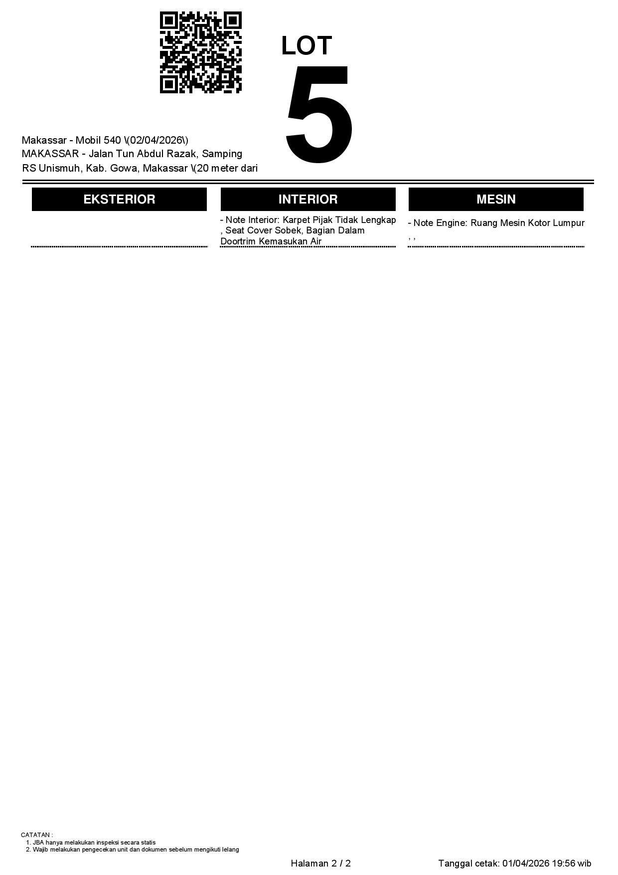 1. Peserta lelang wajib cek unit & dokumen