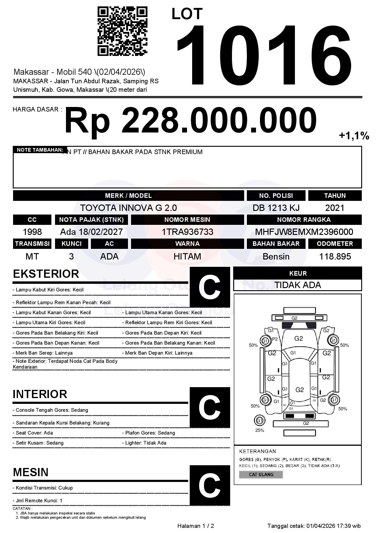 Tanggal Lelang: 02/04/2026 | 13:00 WITA