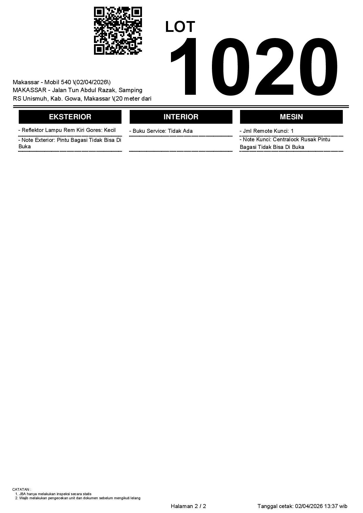 2. Peserta lelang wajib cek unit & dokumen