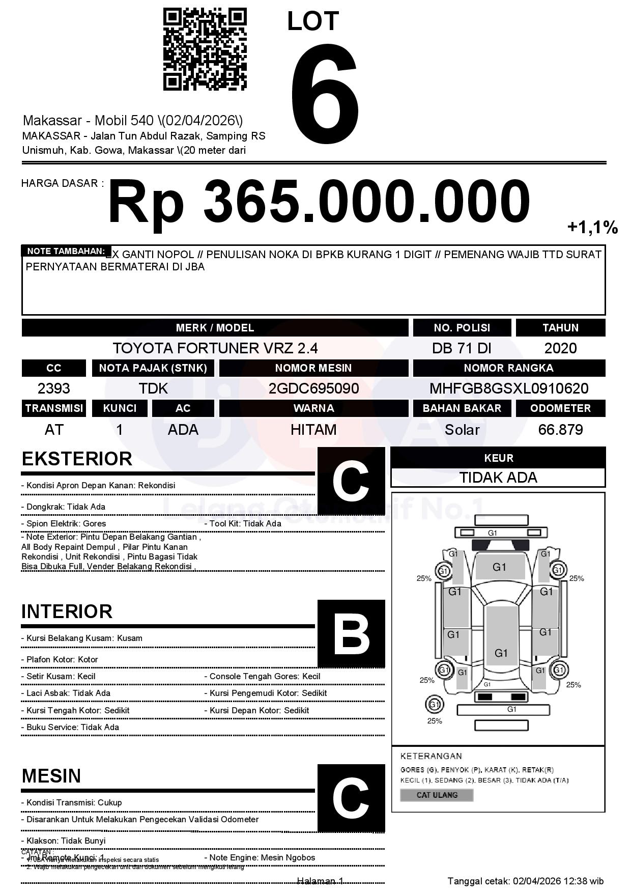 Tanggal Lelang: 02/04/2026 | 13:00 WITA