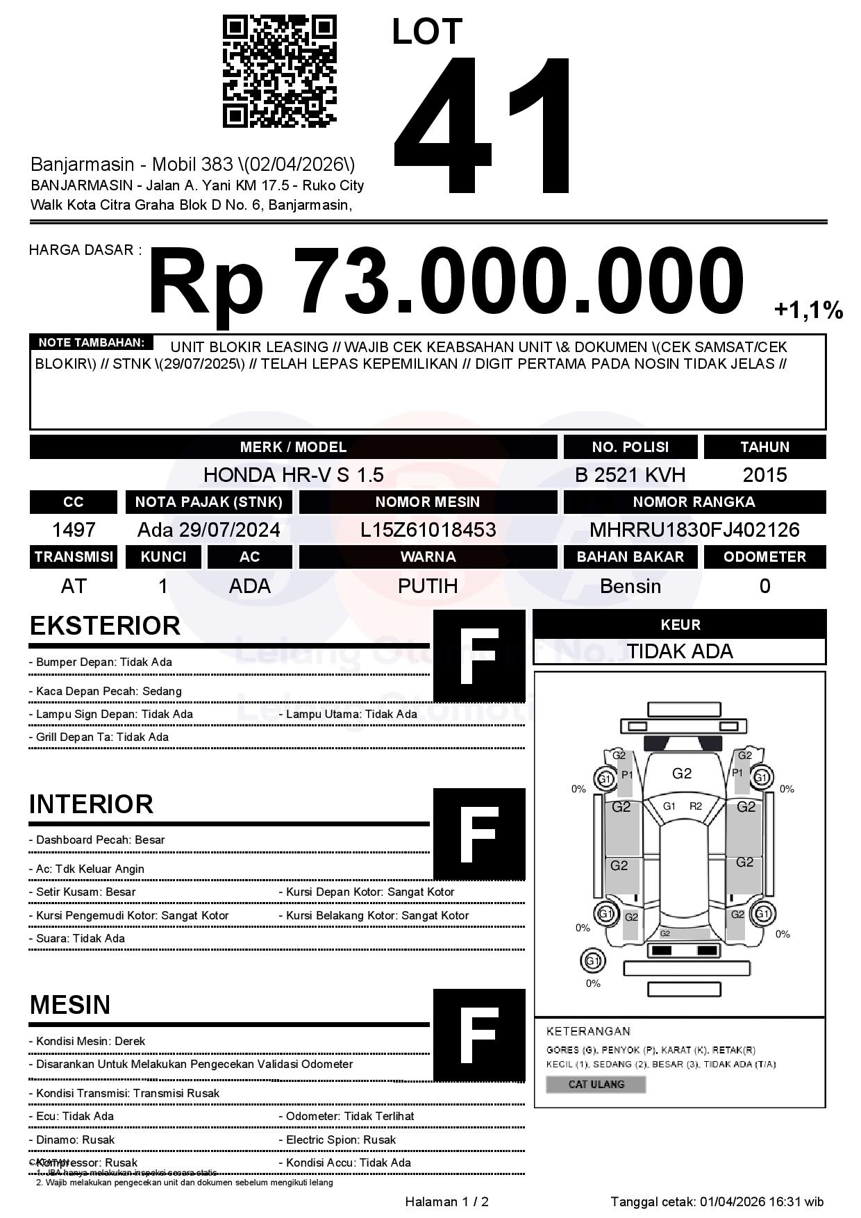 UNIT BLOKIR LEASING // WAJIB CEK KEABSAHAN UNIT & DOKUMEN (CEK SAMSAT/CEK BLOKIR) // STNK (29/07/2025) // TELAH LEPAS KEPEMILIKAN // DIGIT PERTAMA PADA NOSIN TIDAK JELAS //