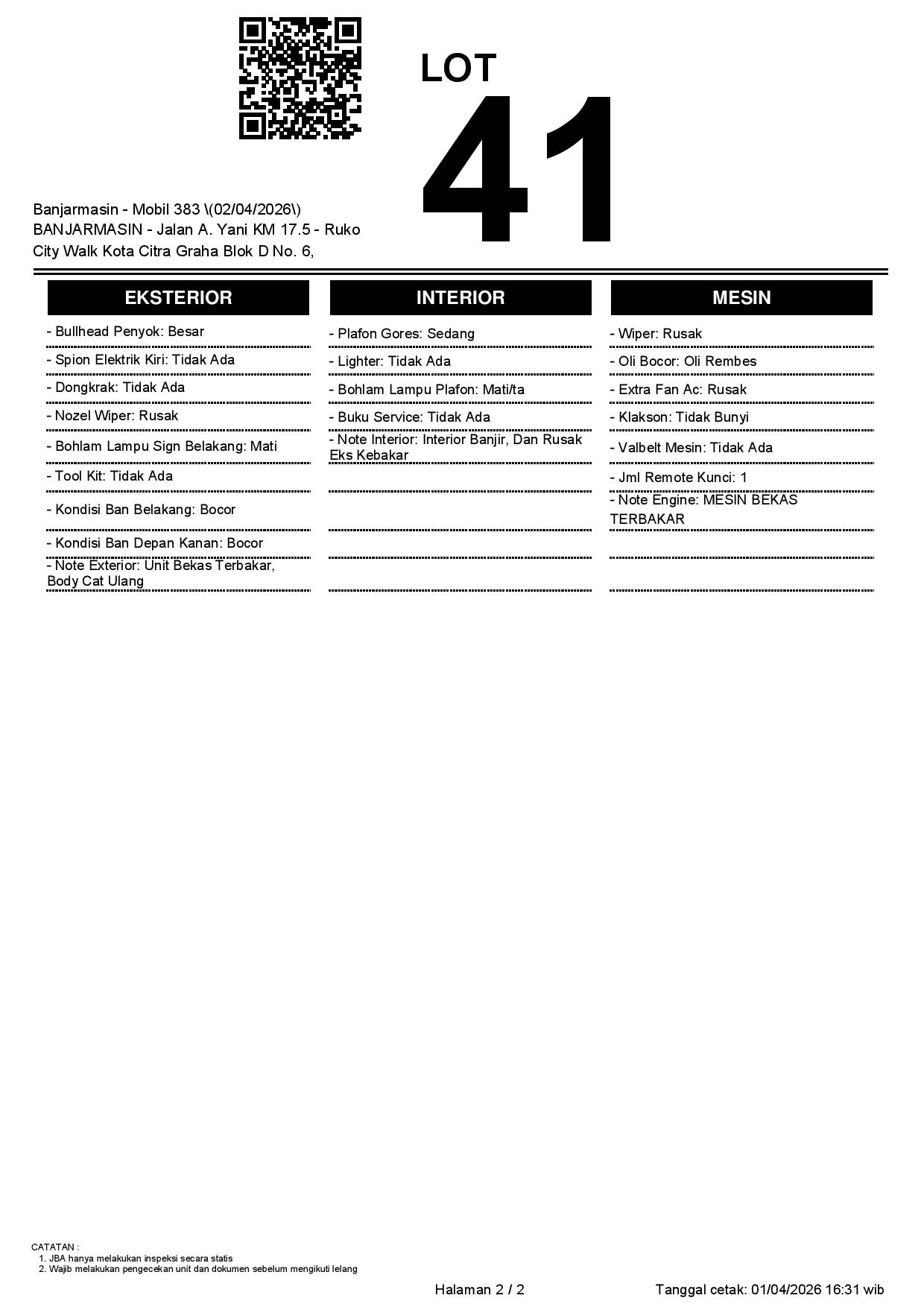 2. Peserta lelang wajib cek unit & dokumen