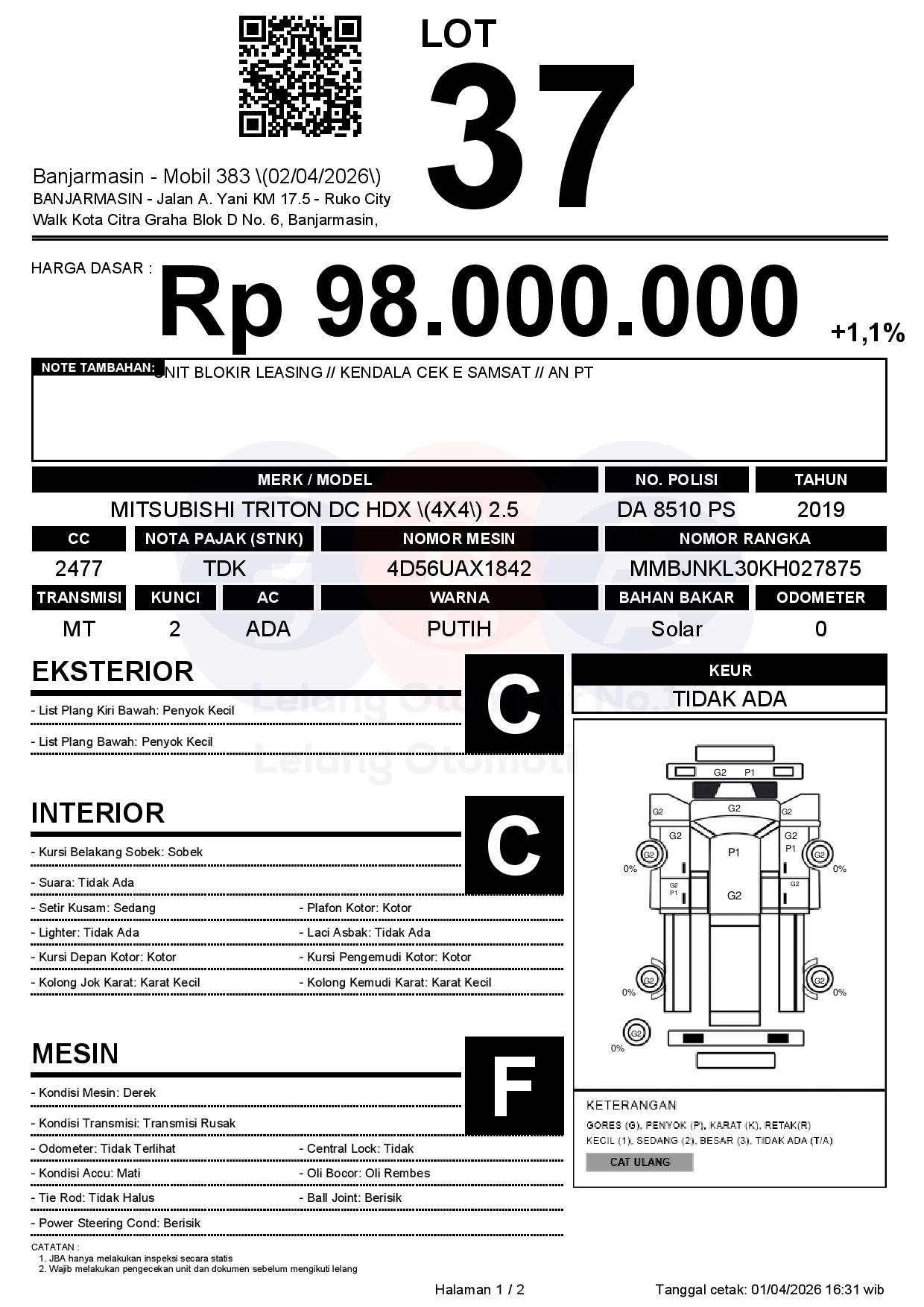 Tanggal Lelang: 02/04/2026 | 13:00 WITA