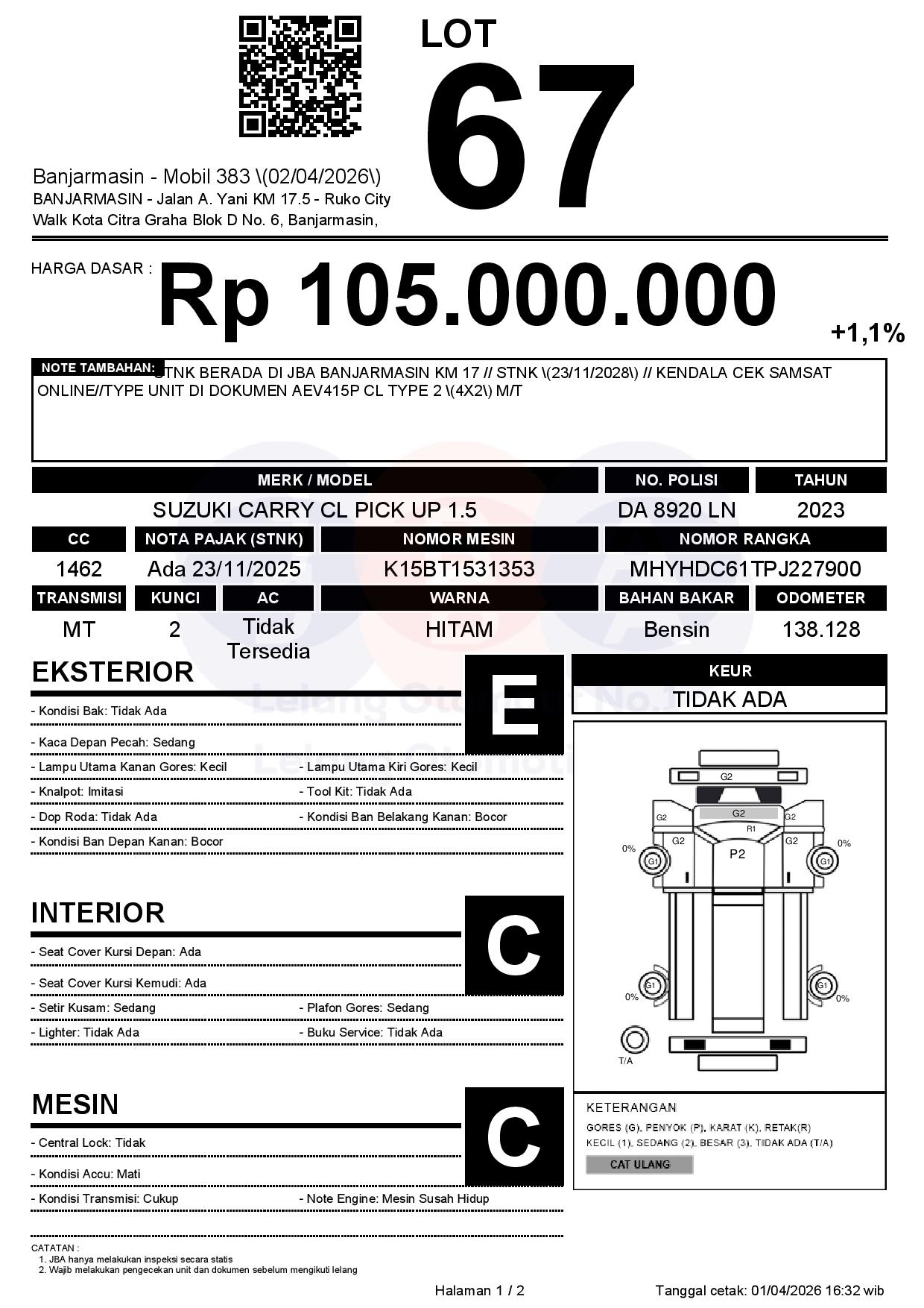 Tanggal Lelang: 02/04/2026 | 13:00 WITA