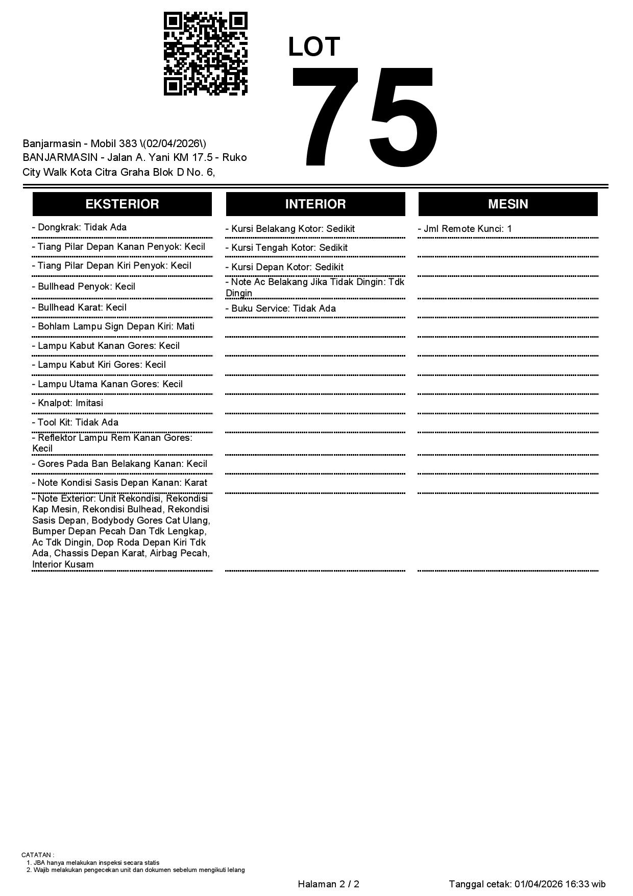 2. Peserta lelang wajib cek unit & dokumen