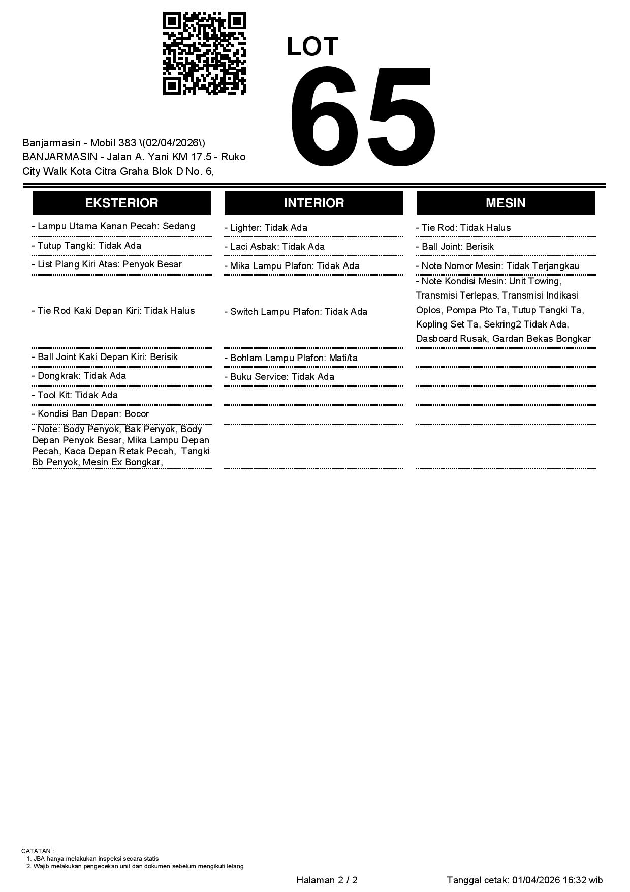 Tanggal Lelang: 02/04/2026 | 13:00 WITA