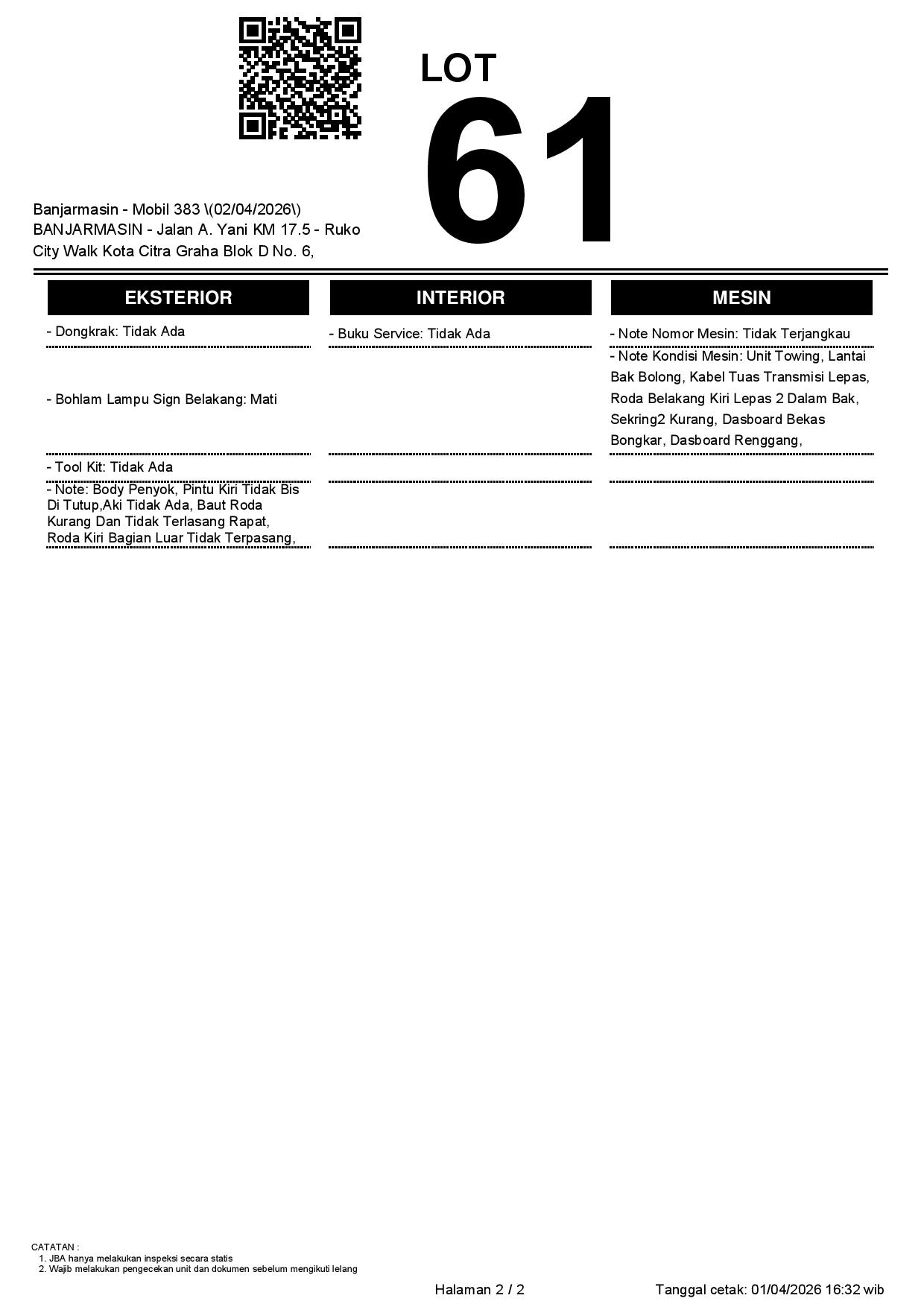 Tanggal Lelang: 02/04/2026 | 13:00 WITA
