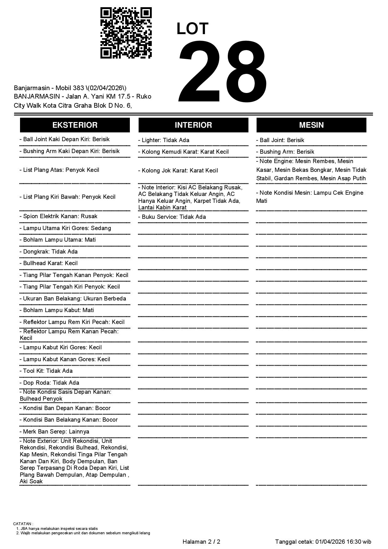 2. Peserta lelang wajib cek unit & dokumen
