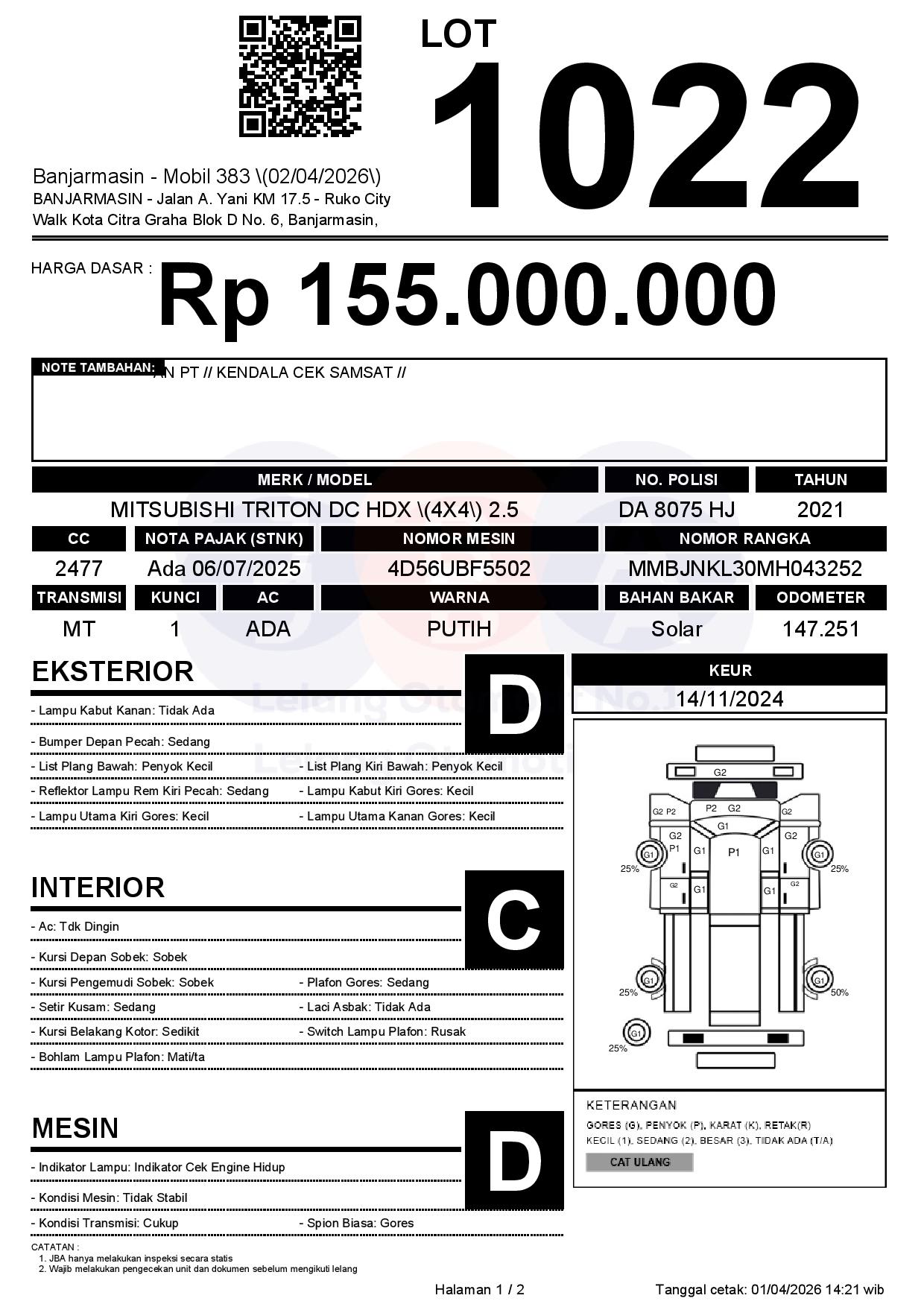 Tanggal Lelang: 02/04/2026 | 14:00 WITA