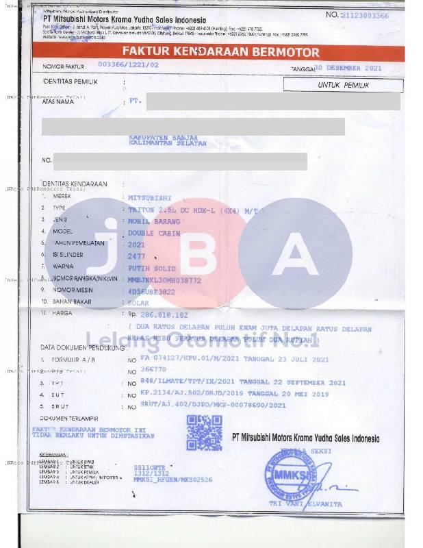 TYPE UNIT DIDOC (TRITON 2.5L DC HDX-L 4X4 MT // AN PT // KENDALA CEK SAMSAT ONLINE // KWT MATERAI TERAAN //