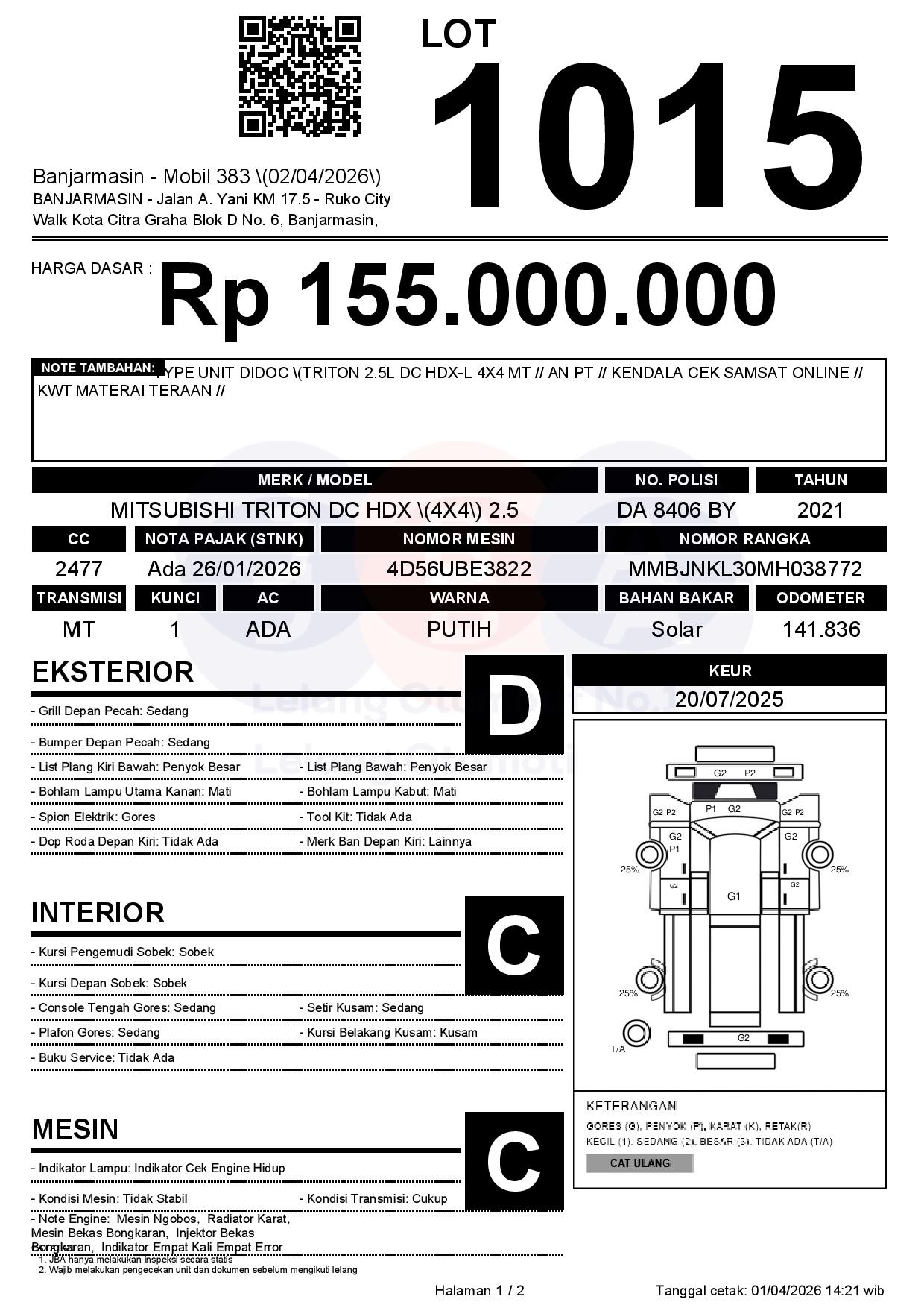 Tanggal Lelang: 02/04/2026 | 14:00 WITA