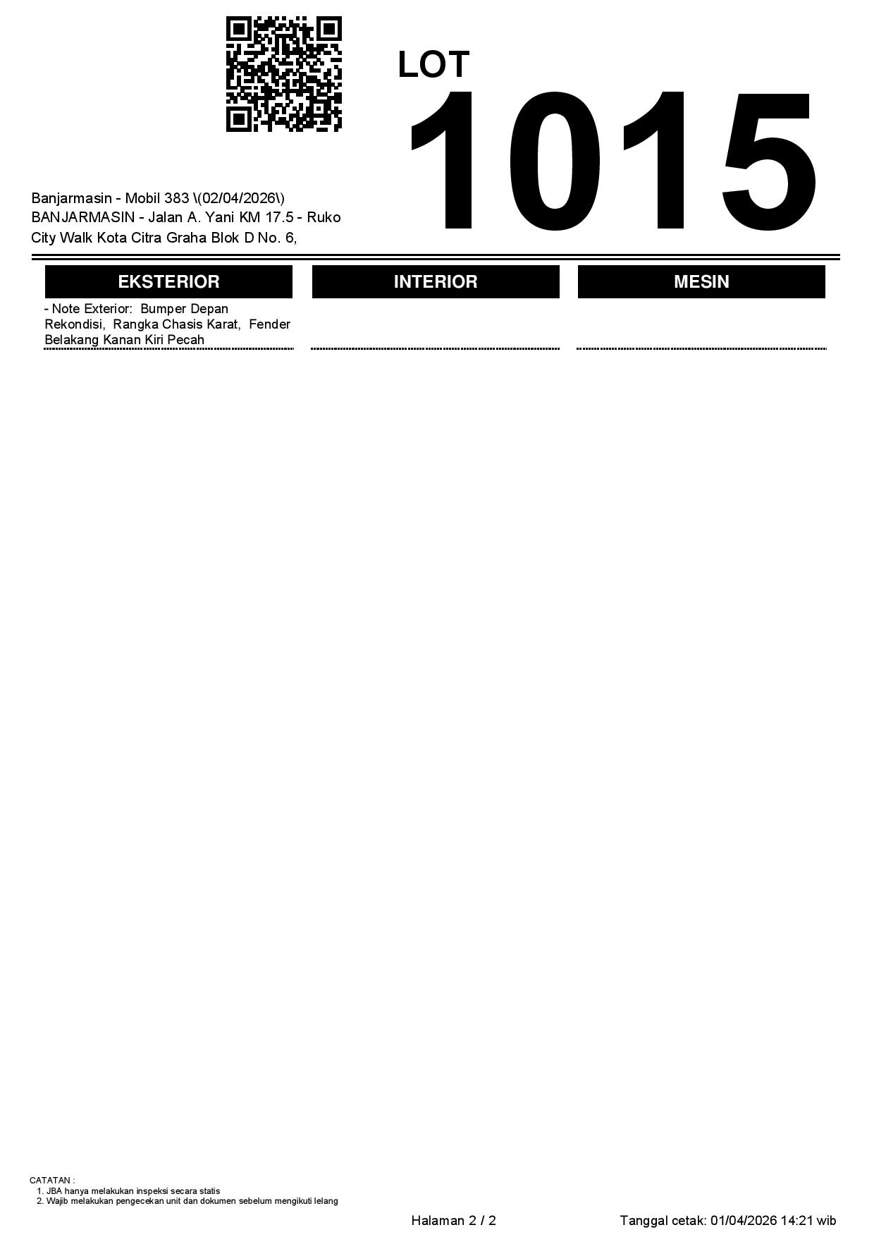 1. Peserta lelang wajib cek unit & dokumen
