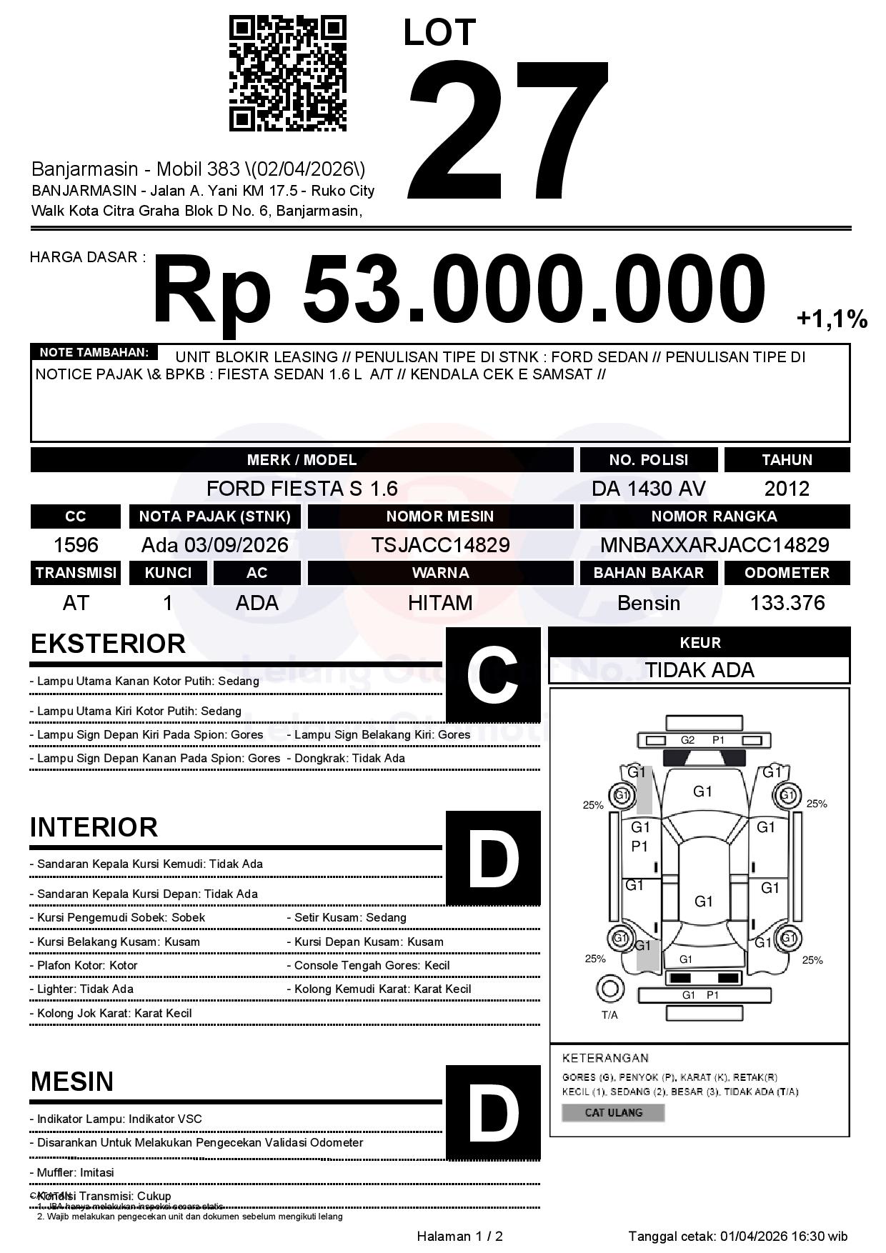 Tanggal Lelang: 02/04/2026 | 13:00 WITA