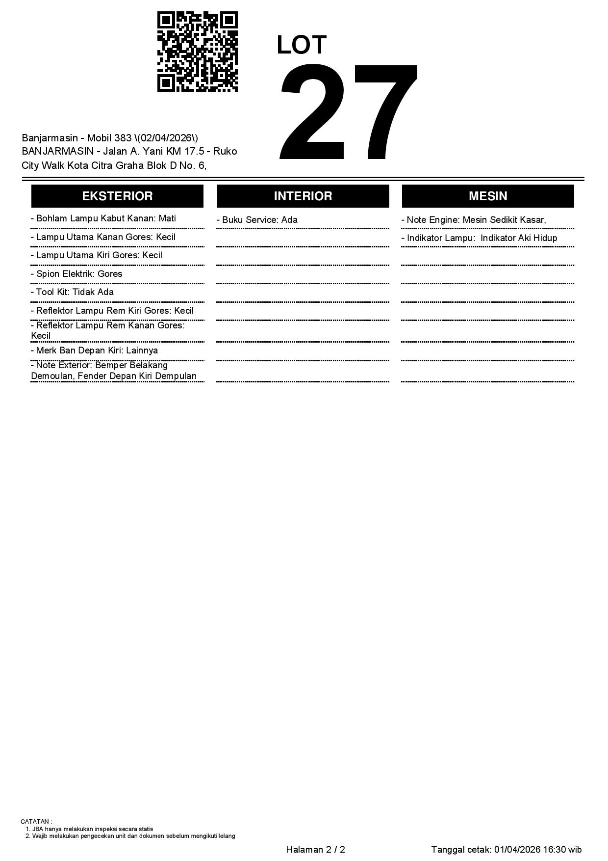 2. Peserta lelang wajib cek unit & dokumen
