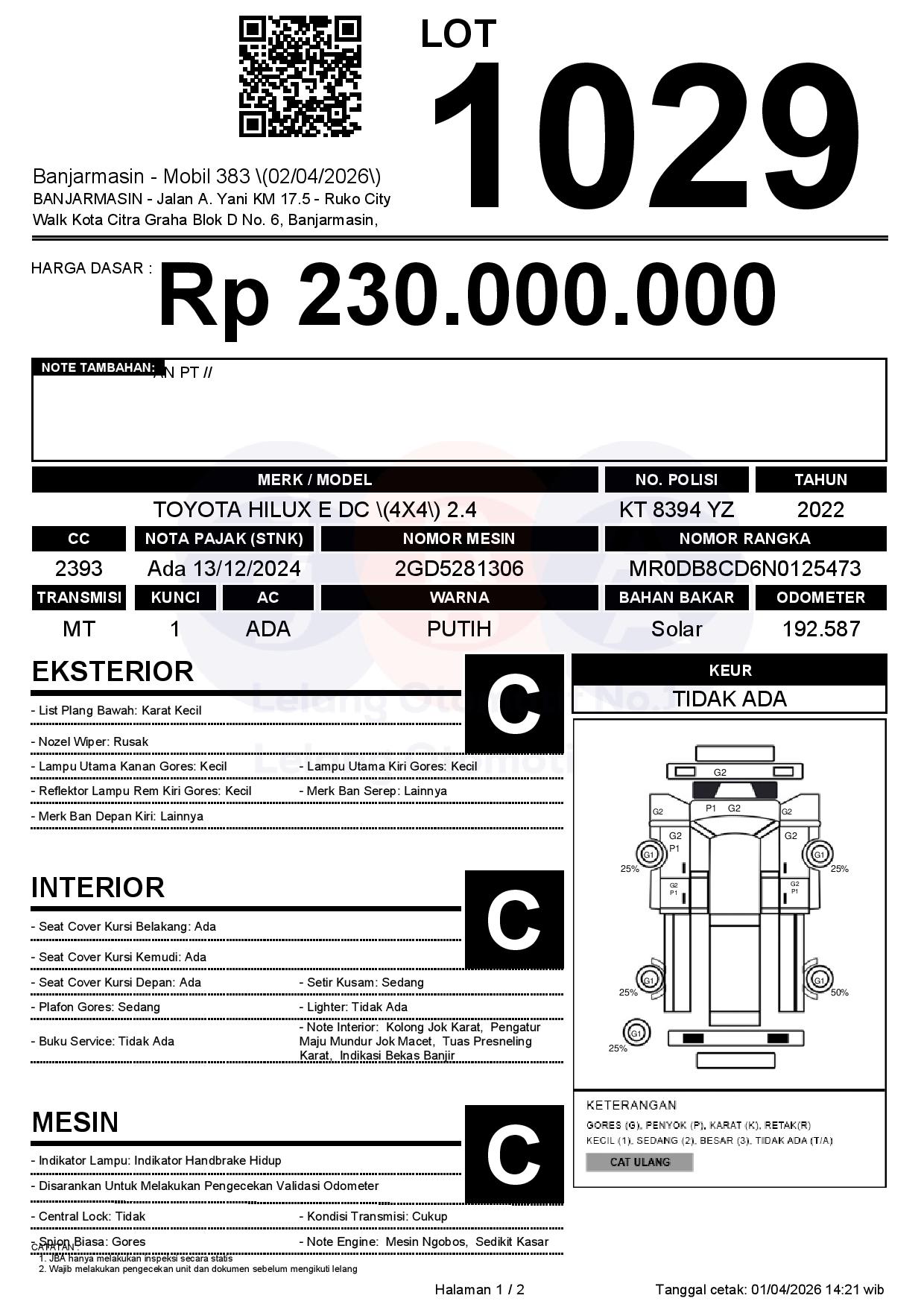 Tanggal Lelang: 02/04/2026 | 14:00 WITA