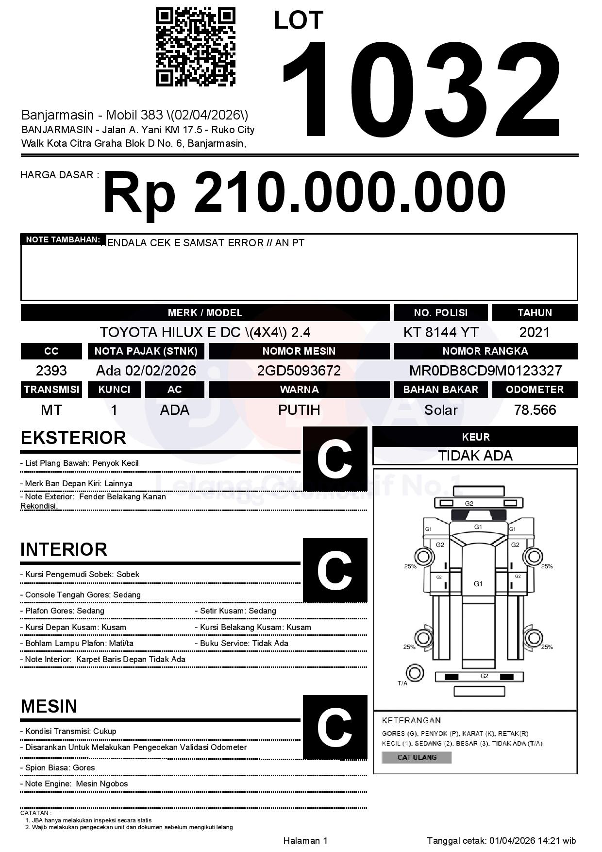 Tanggal Lelang: 02/04/2026 | 14:00 WITA