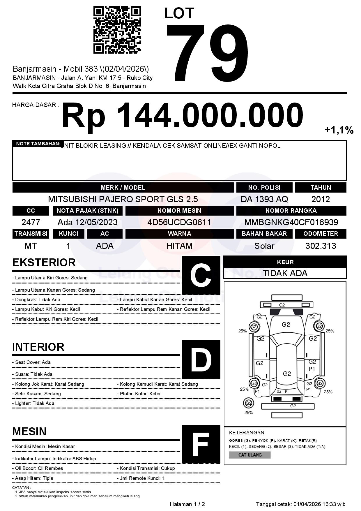 Tanggal Lelang: 02/04/2026 | 13:00 WITA