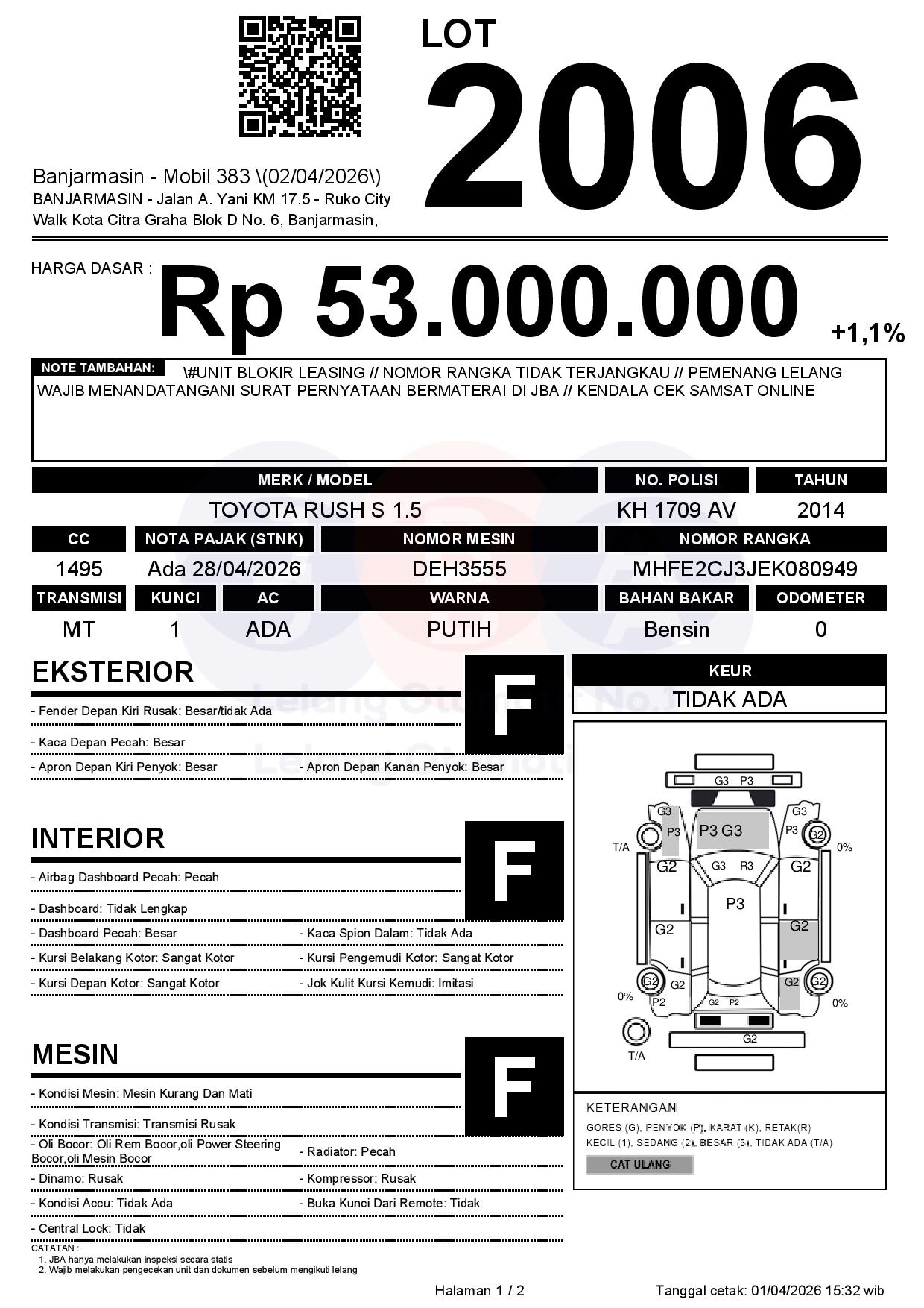 Tanggal Lelang: 02/04/2026 | 14:00 WITA