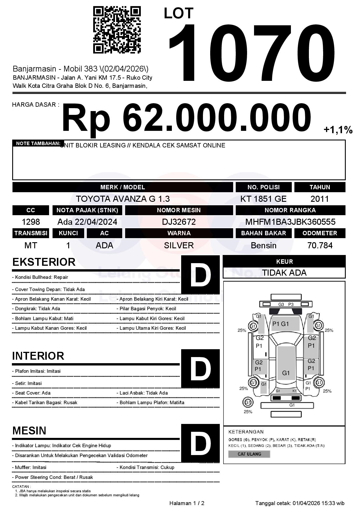 Tanggal Lelang: 02/04/2026 | 14:00 WITA