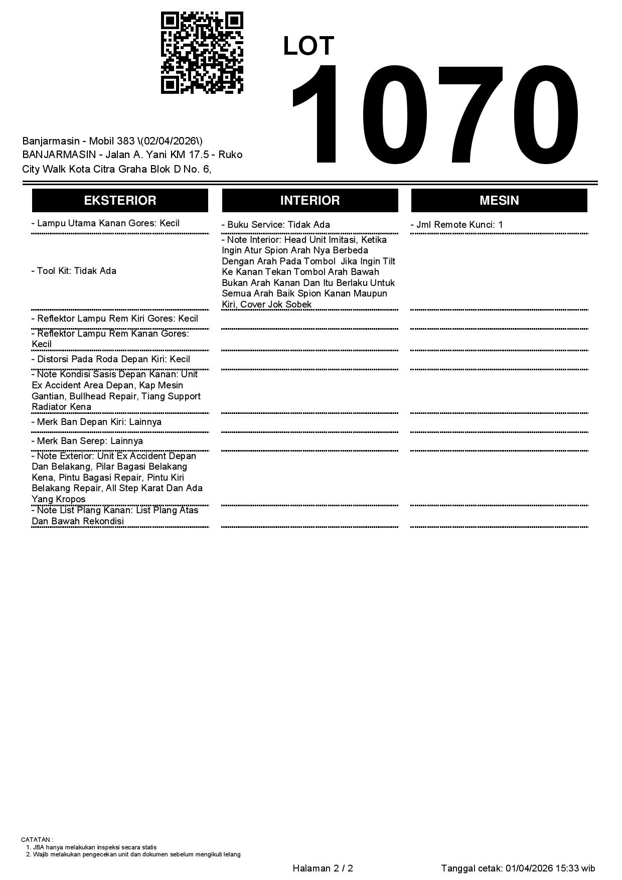 2. Peserta lelang wajib cek unit & dokumen