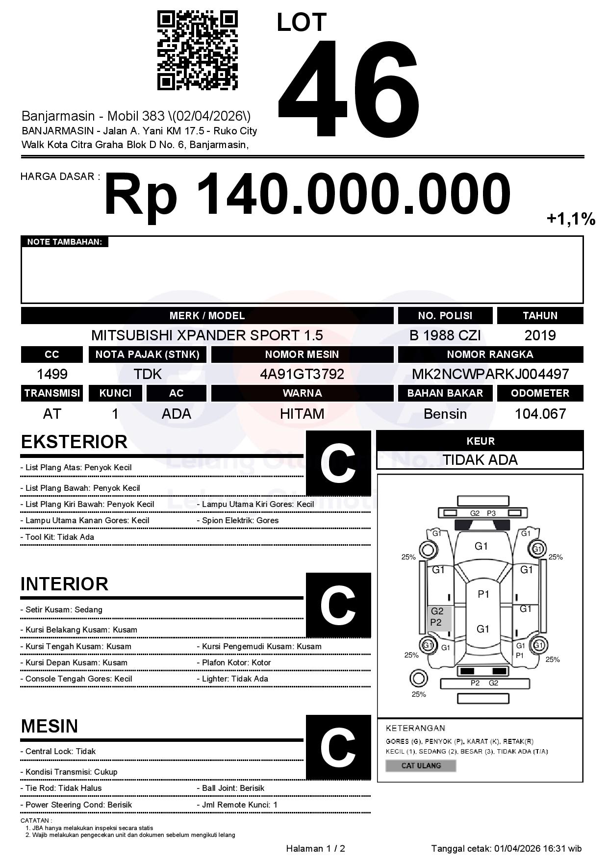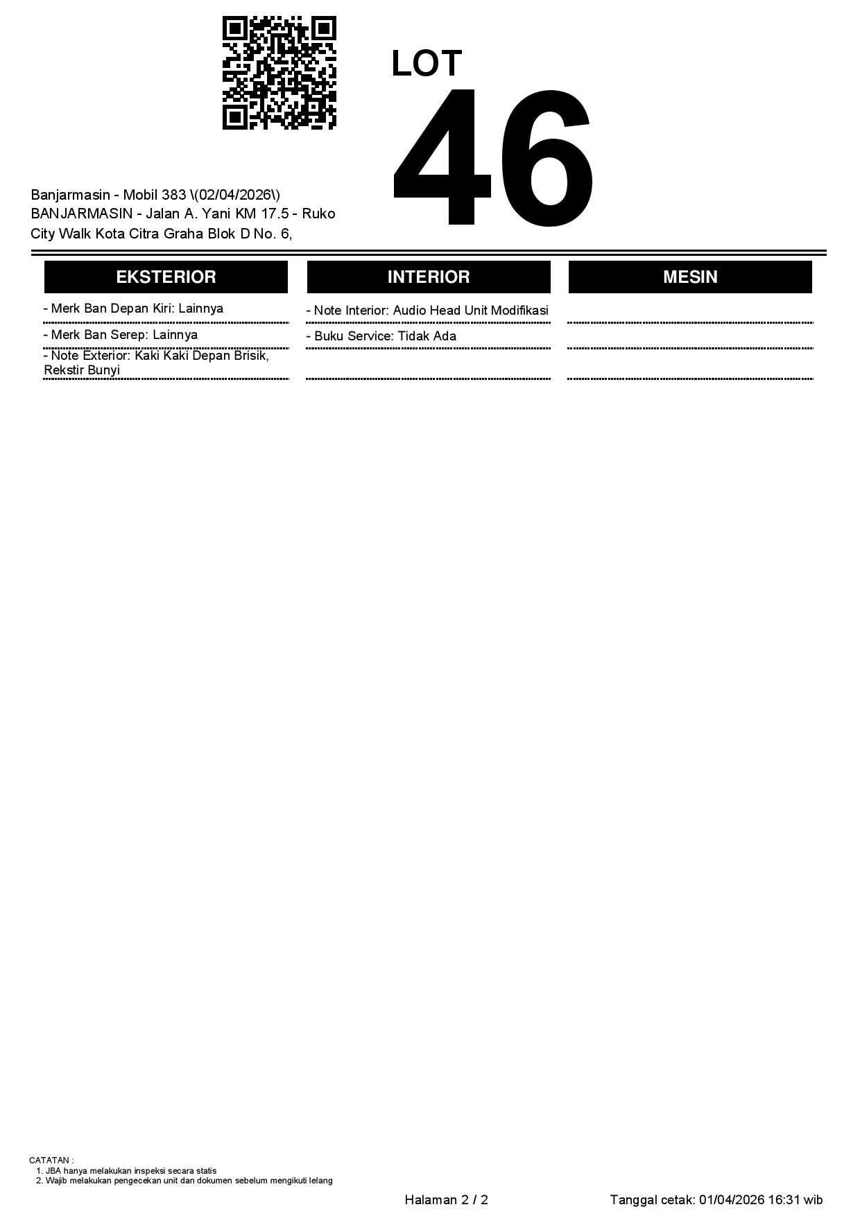 Tanggal Lelang: 02/04/2026 | 13:00 WITA
