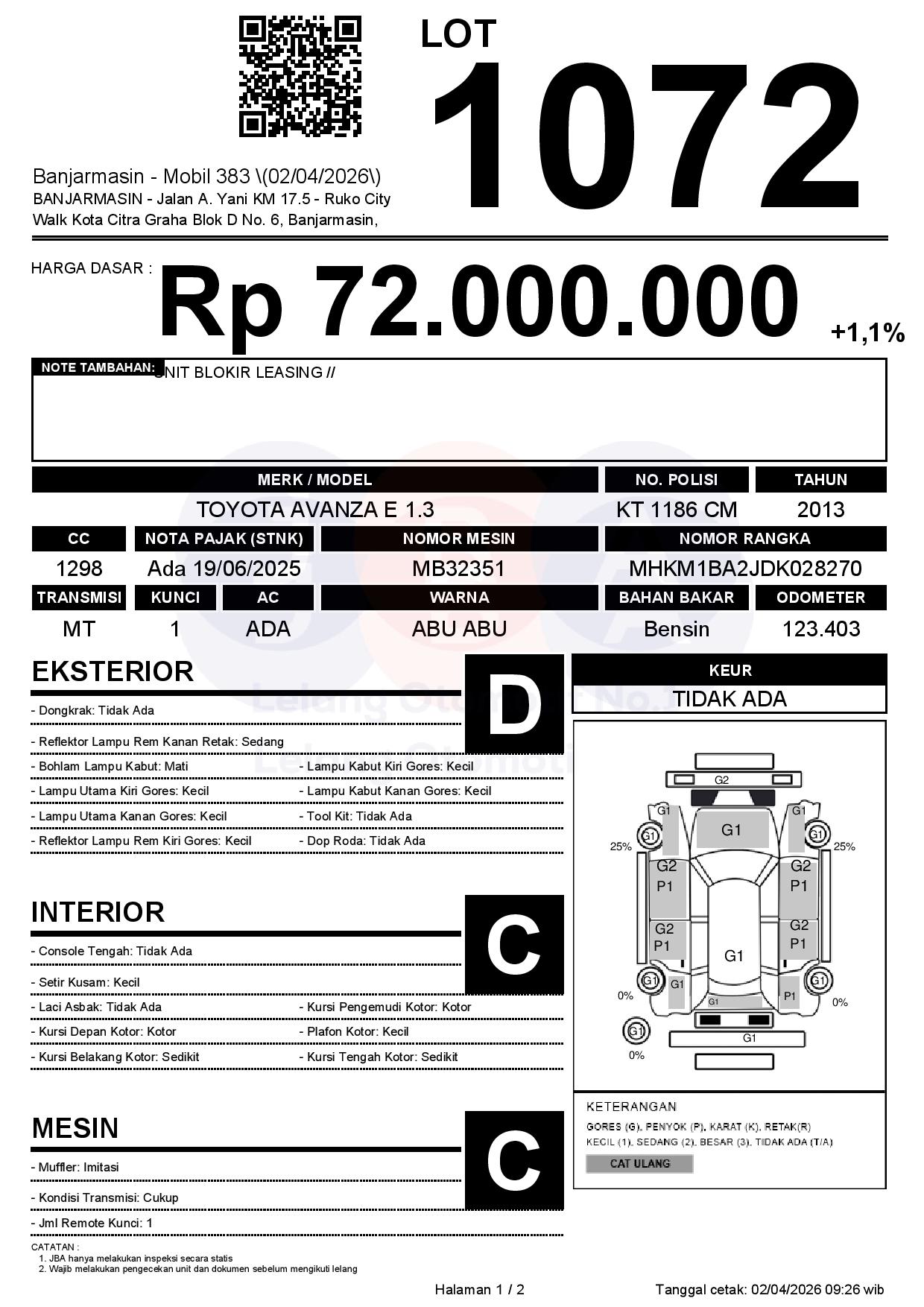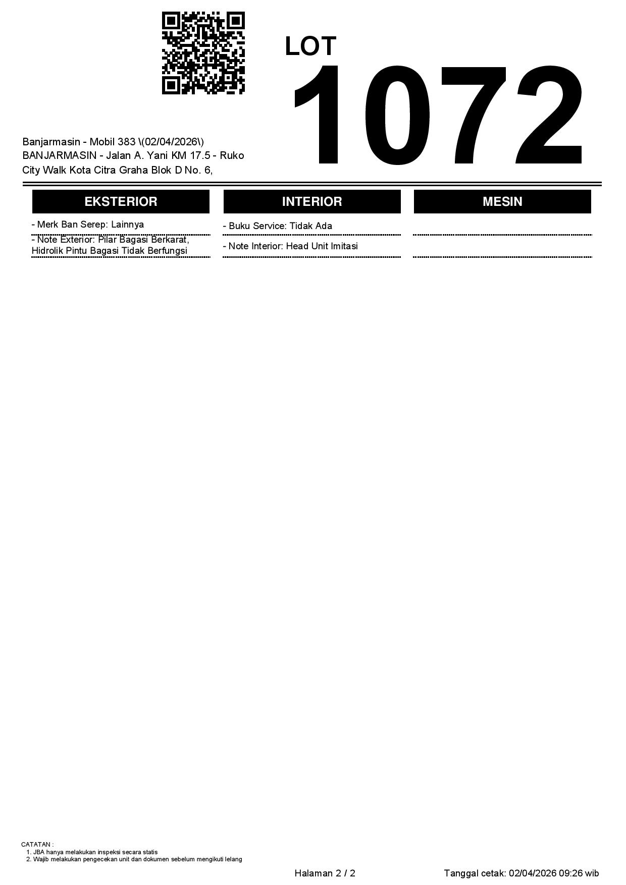 Tanggal Lelang: 02/04/2026 | 14:00 WITA