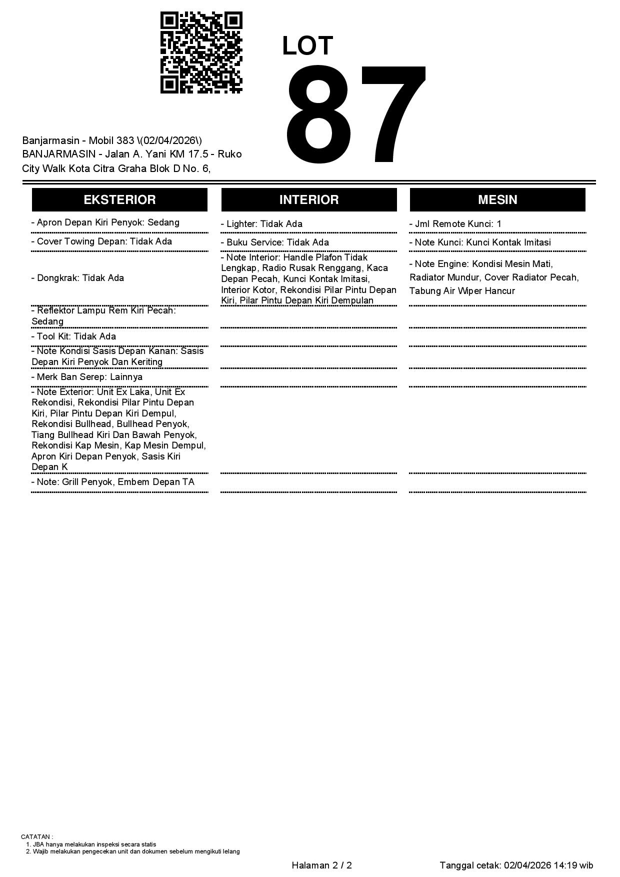 2. Peserta lelang wajib cek unit & dokumen
