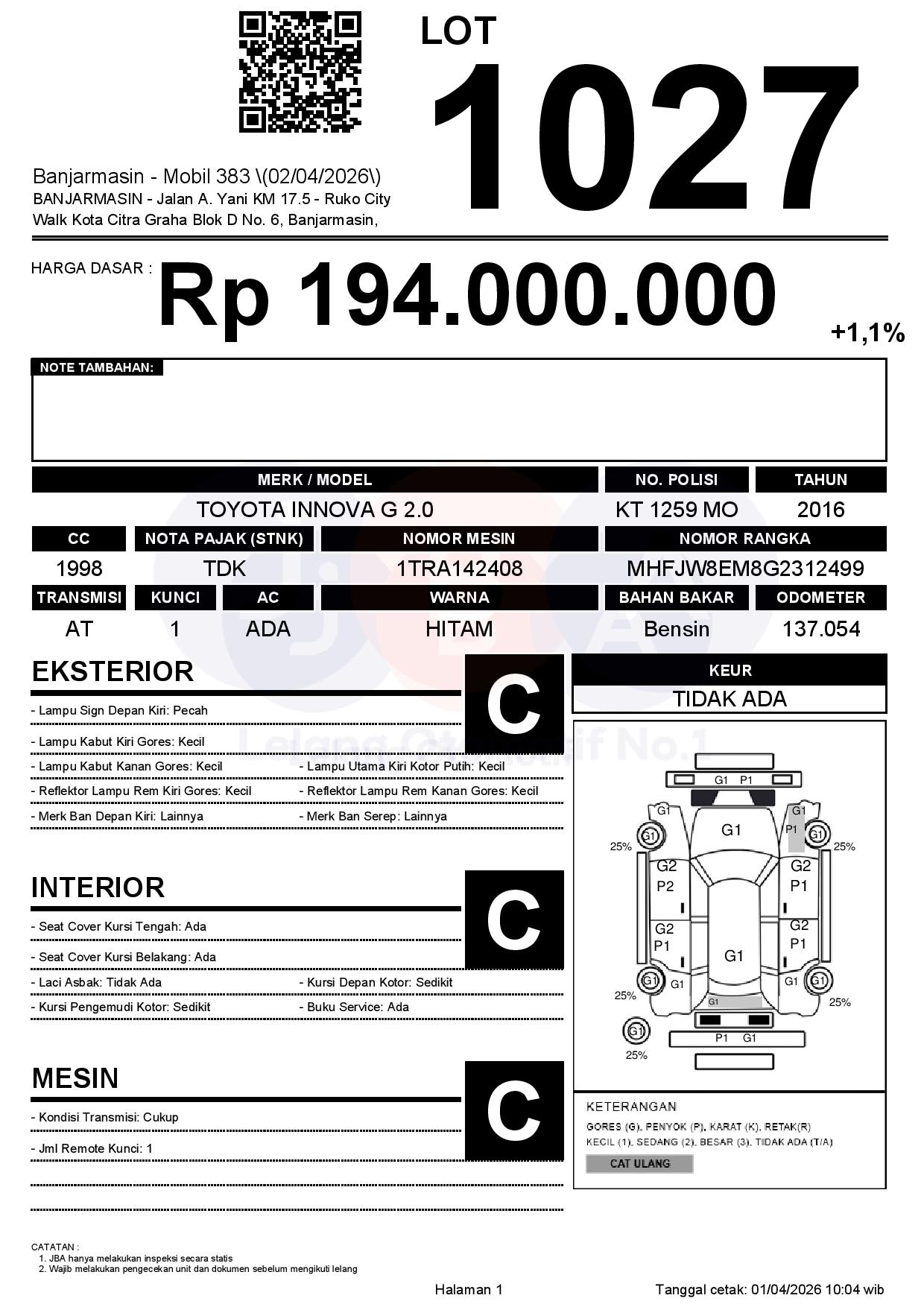Tanggal Lelang: 02/04/2026 | 14:00 WITA