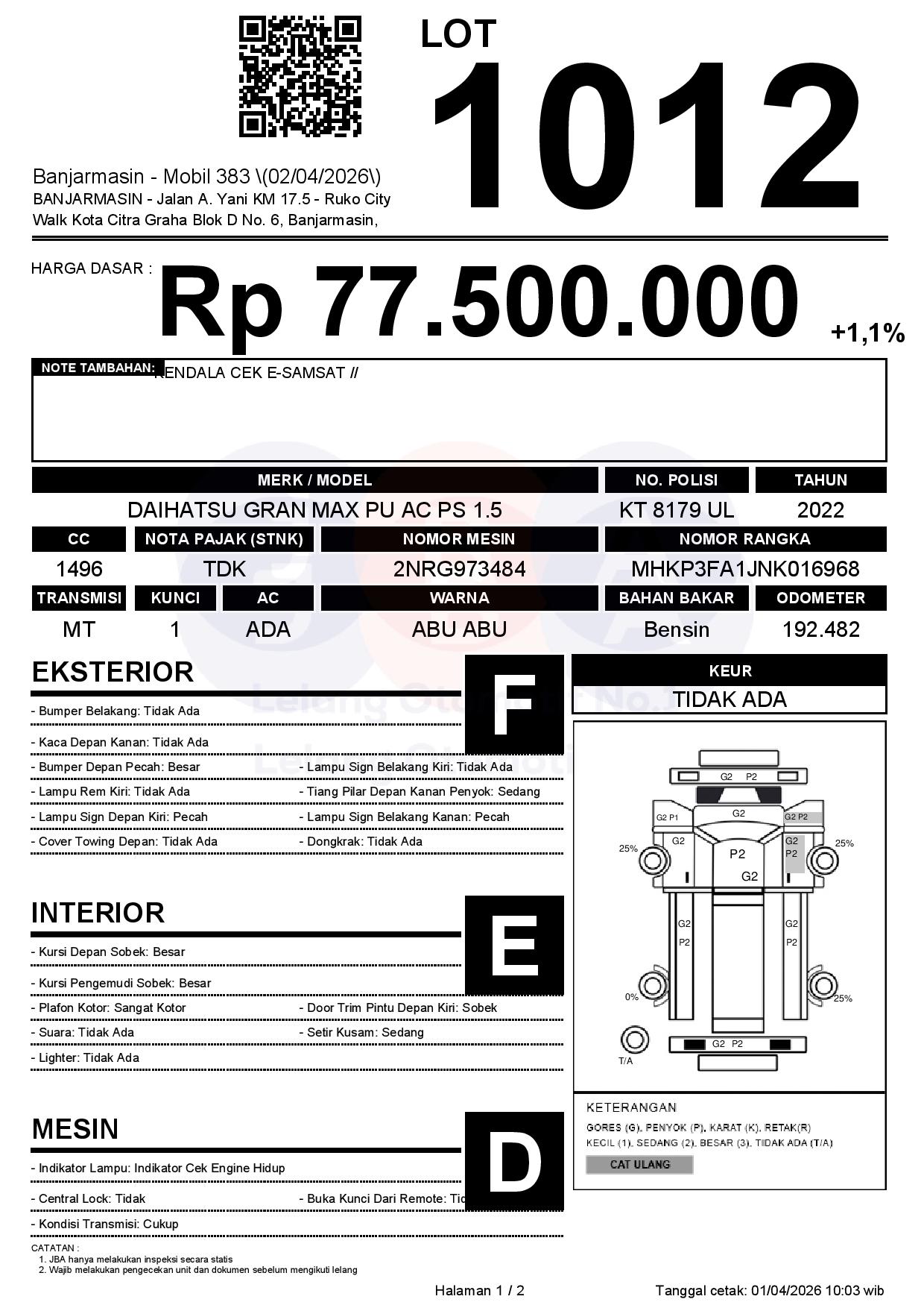 Tanggal Lelang: 02/04/2026 | 14:00 WITA