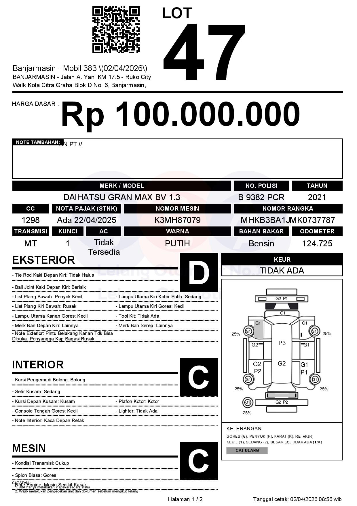 Tanggal Lelang: 02/04/2026 | 13:00 WITA