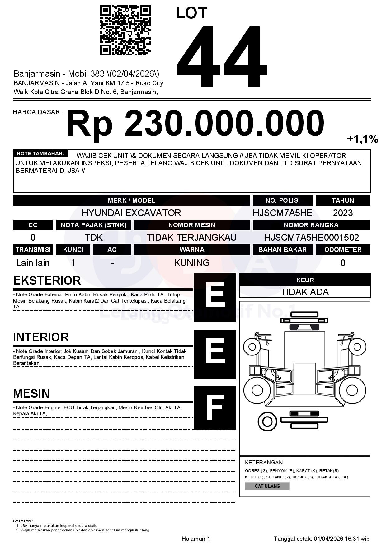 WAJIB CEK UNIT & DOKUMEN SECARA LANGSUNG // JBA TIDAK MEMILIKI OPERATOR UNTUK MELAKUKAN INSPEKSI, PESERTA LELANG WAJIB CEK UNIT, DOKUMEN DAN TTD SURAT PERNYATAAN BERMATERAI DI JBA //
