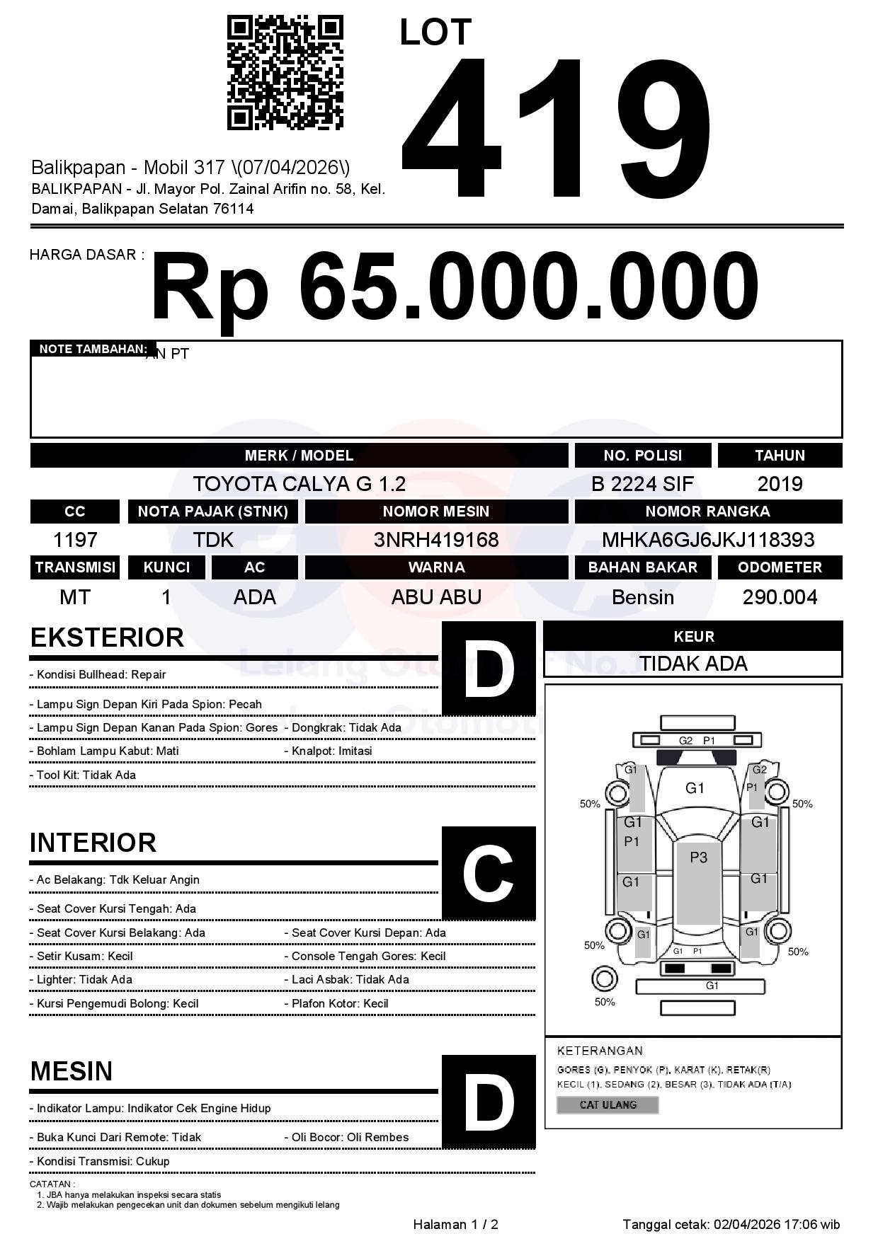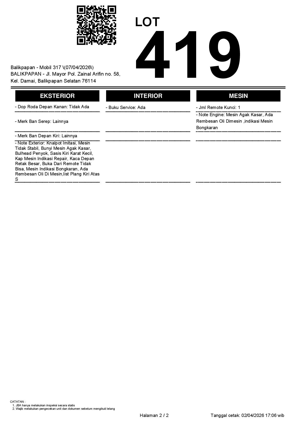 Tanggal Lelang: 02/04/2026 | 13:00 WITA