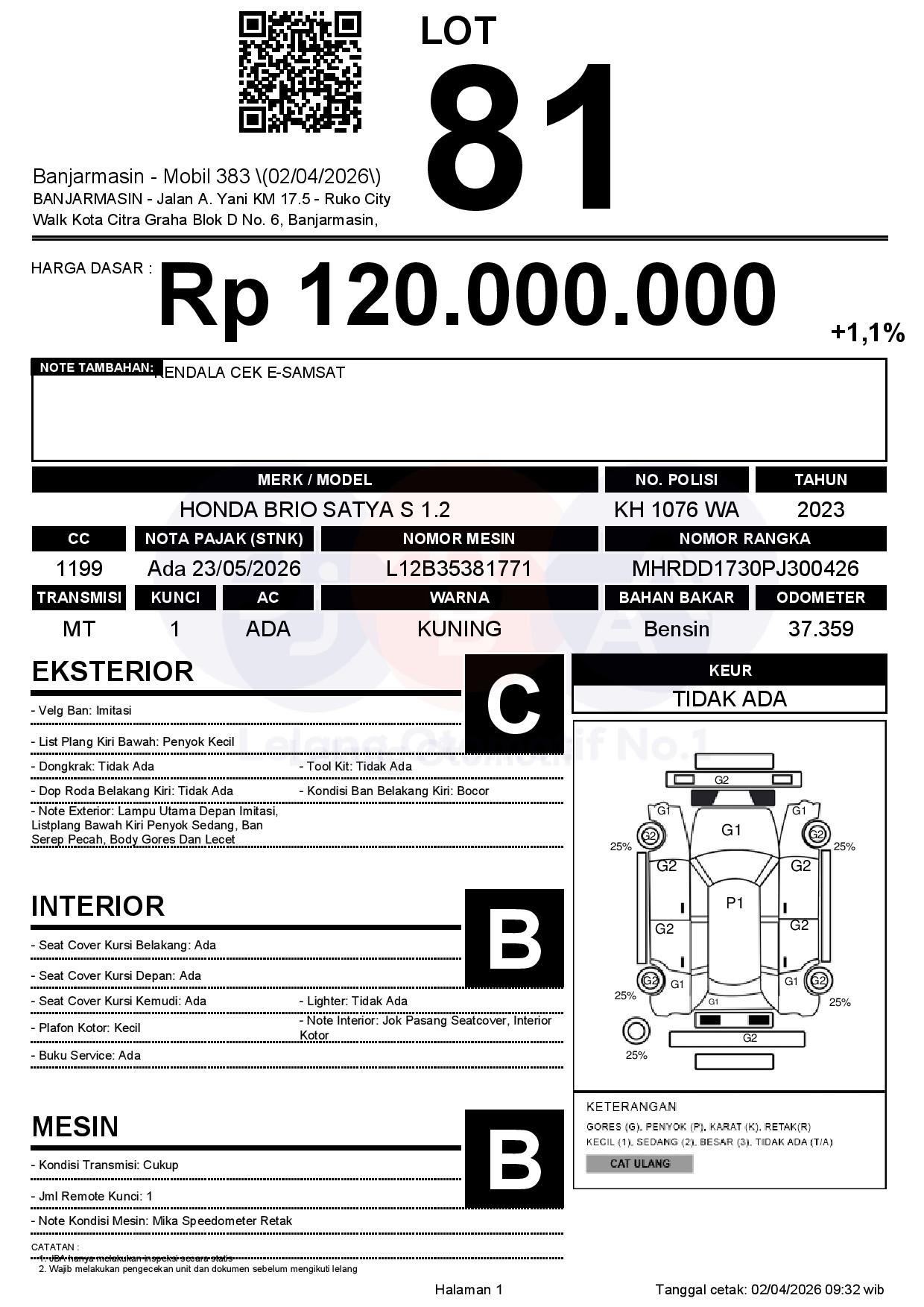 Tanggal Lelang: 02/04/2026 | 13:00 WITA