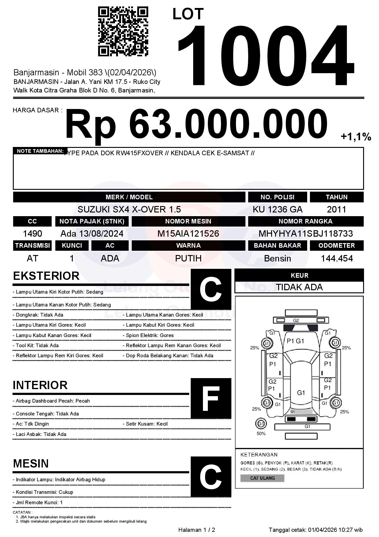 Tanggal Lelang: 02/04/2026 | 14:00 WITA
