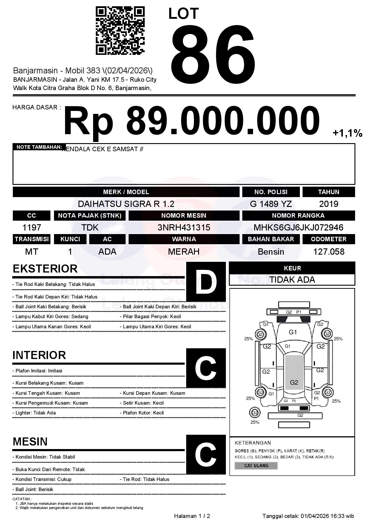 Tanggal Lelang: 02/04/2026 | 13:00 WITA
