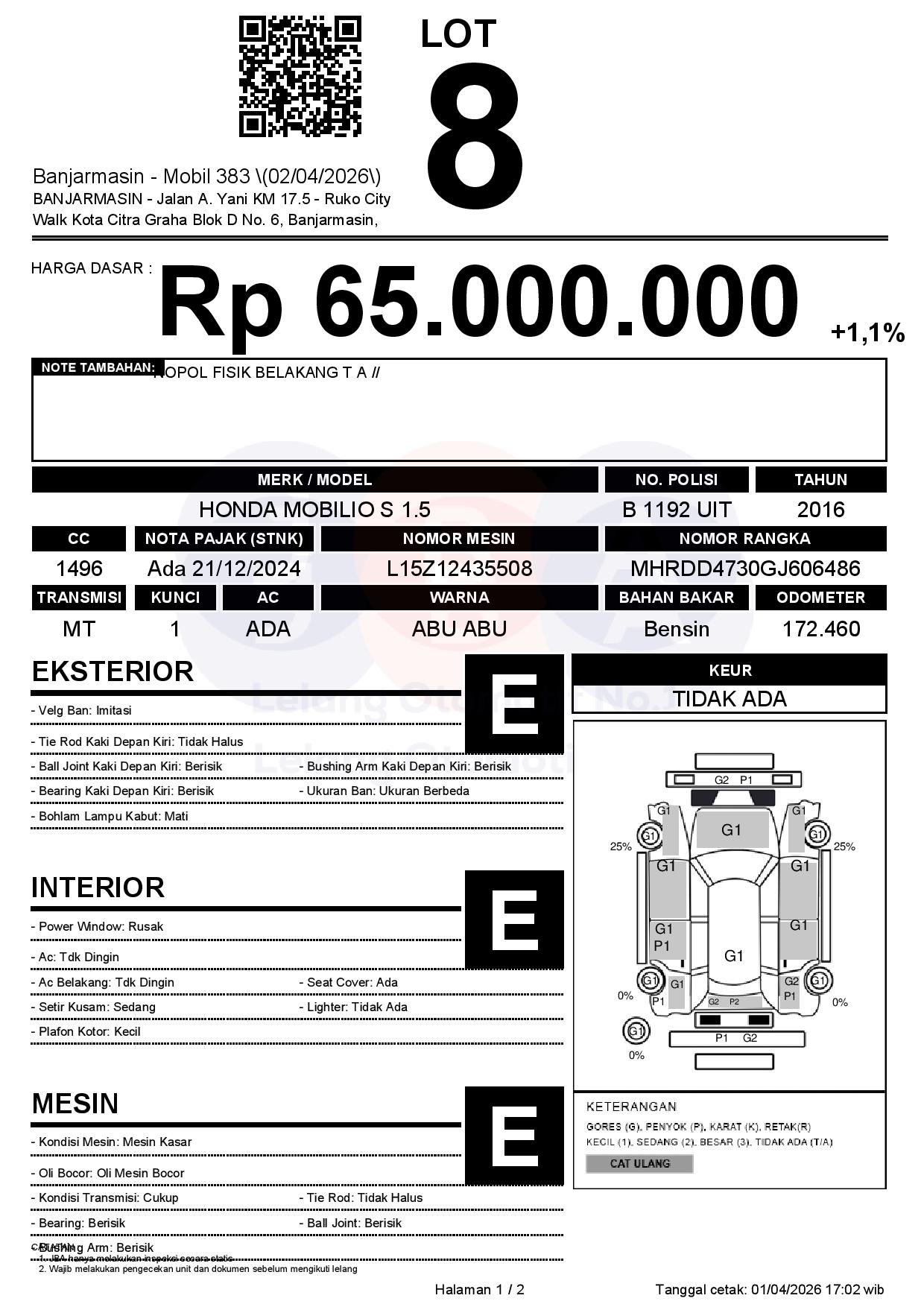 Tanggal Lelang: 02/04/2026 | 13:00 WITA