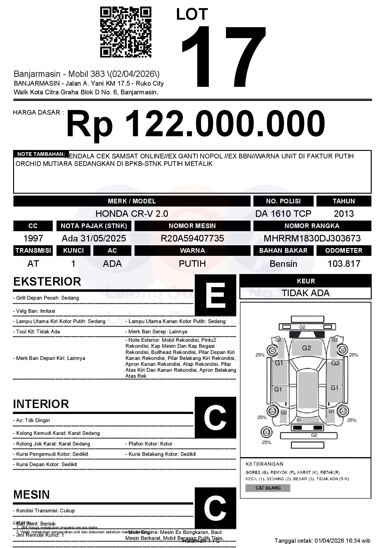 Tanggal Lelang: 02/04/2026 | 13:00 WITA