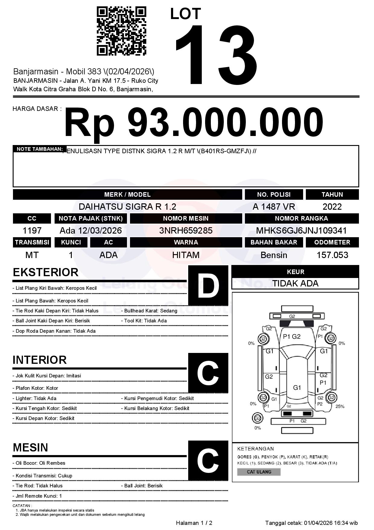 Tanggal Lelang: 02/04/2026 | 13:00 WITA