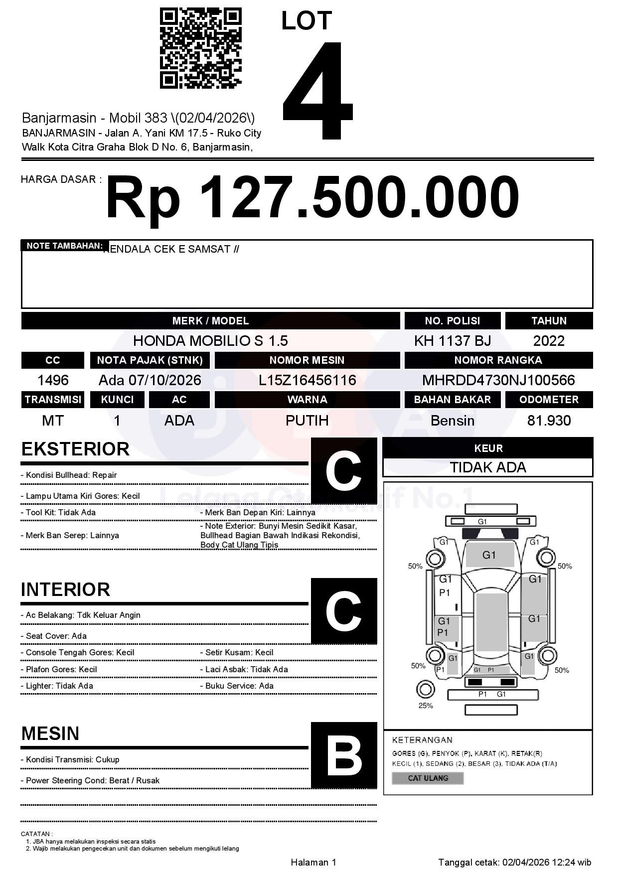 Tanggal Lelang: 02/04/2026 | 13:00 WITA