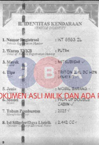 TYPE UNIT AKTUAL TRITON 2.4L DC HDX (4X4) M/T // TYPE UNIT AKTUAL TRITON 2.4L DC HDX (4X4) M/T // UNIT BERADA DI POOL SELLER // UNIT TIDAK DI CHECKLIST SECARA LANGSUNG // PEMENANG WAJIB TTD SURAT PERNYATAAN BERMATERAI DI JBA // PLAT FISIK TA // UNIT EX LAKA // FOTO NOKA NOSIN TDK TERLAMPIR