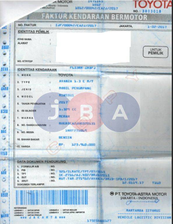 NOSIN INDIKASI KETRIK ULANG // NO RANGKA TEMPELAN // PEMENANG WAJIB TTD SURAT PERNYATAAN DI JBA WAJIB BERMATERAI // WARNA DI DOC MERAH // AN KOPRASI // SPH MATERAI 6000 //