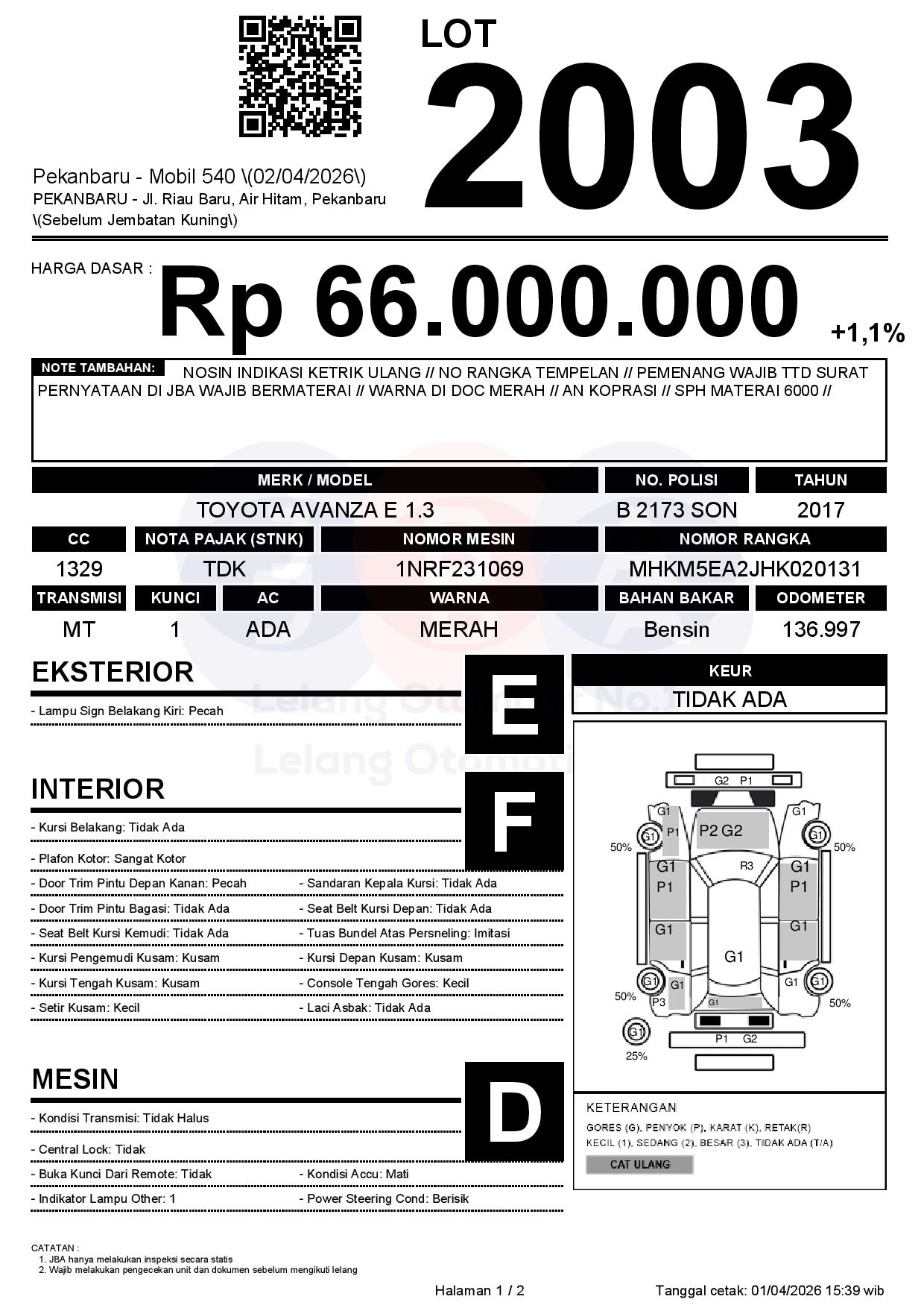 Tanggal Lelang: 02/04/2026 | 14:00 WIB