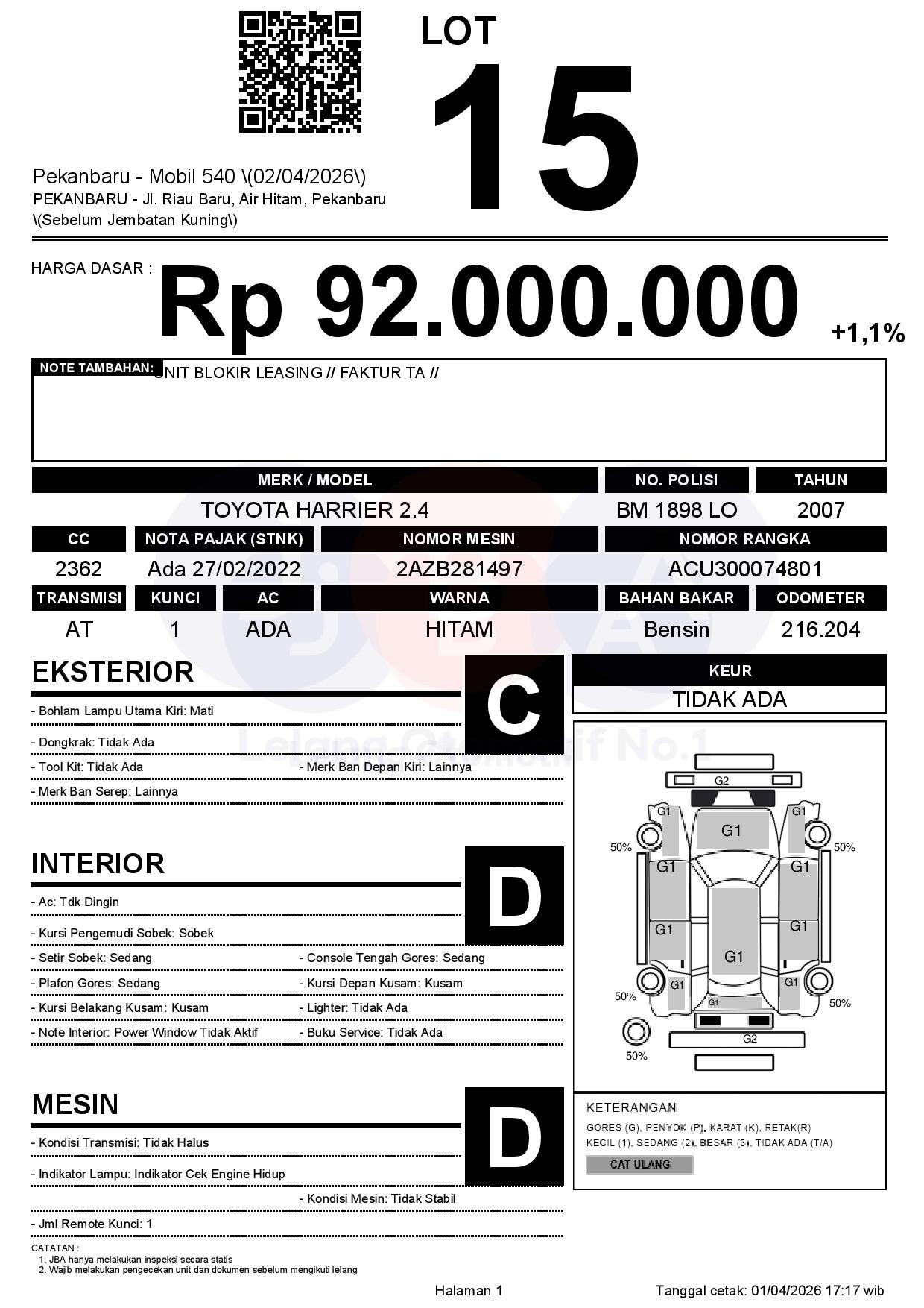 Tanggal Lelang: 02/04/2026 | 13:00 WIB
