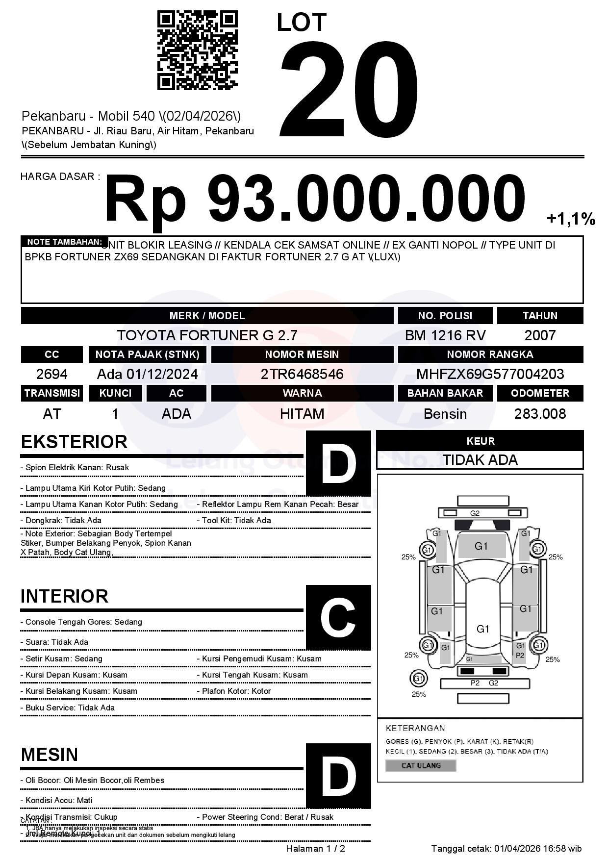 Tanggal Lelang: 02/04/2026 | 13:00 WIB