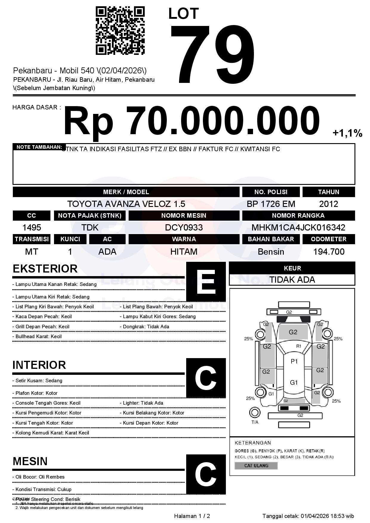 Tanggal Lelang: 02/04/2026 | 13:00 WIB