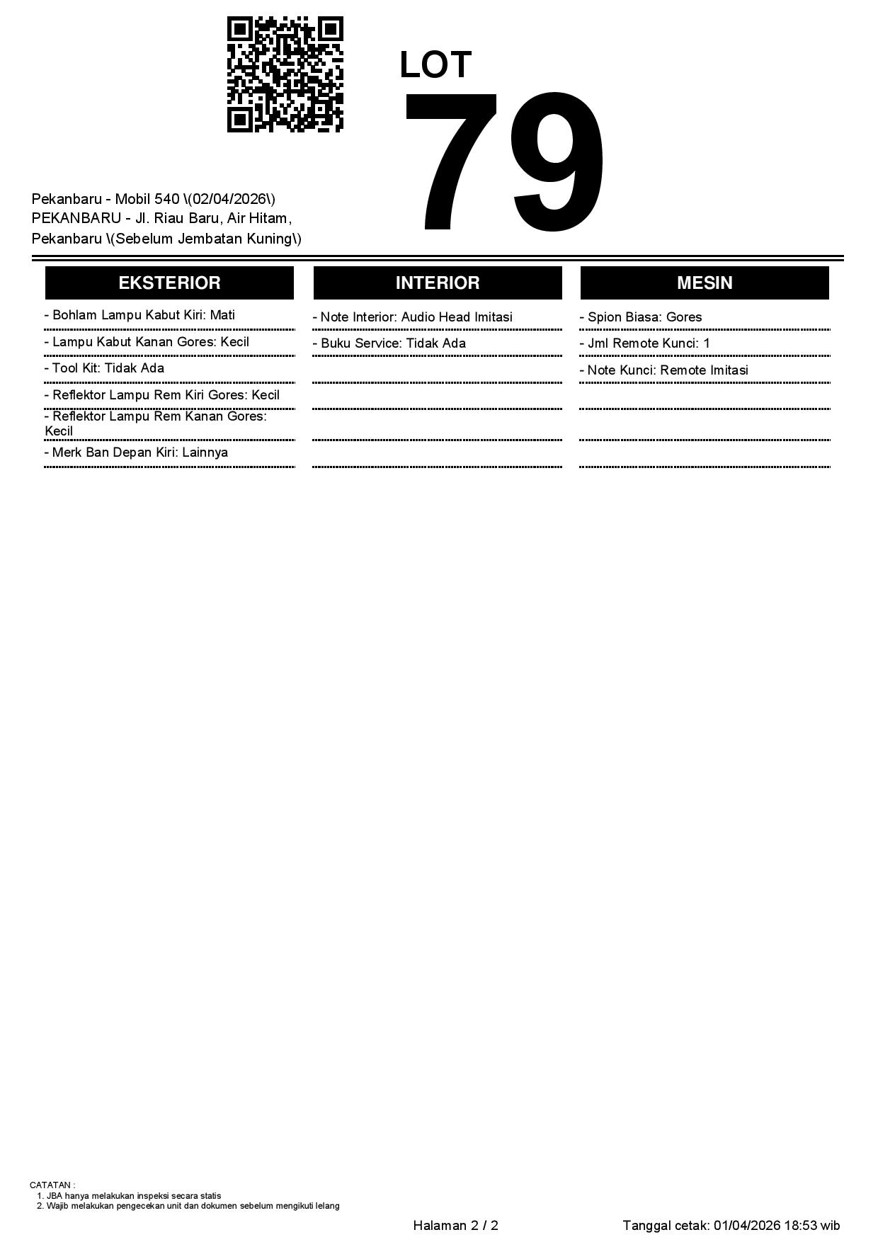 2. Peserta lelang wajib cek unit & dokumen