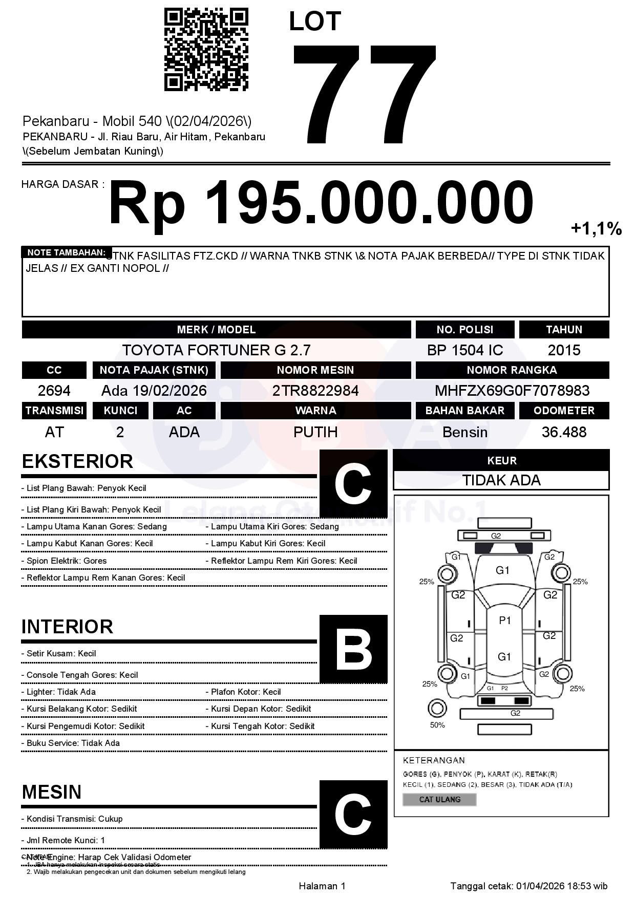 Tanggal Lelang: 02/04/2026 | 13:00 WIB