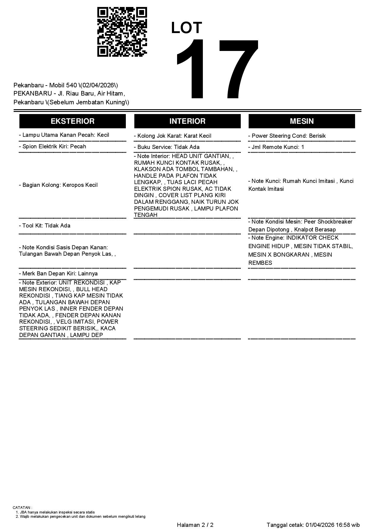 2. Peserta lelang wajib cek unit & dokumen